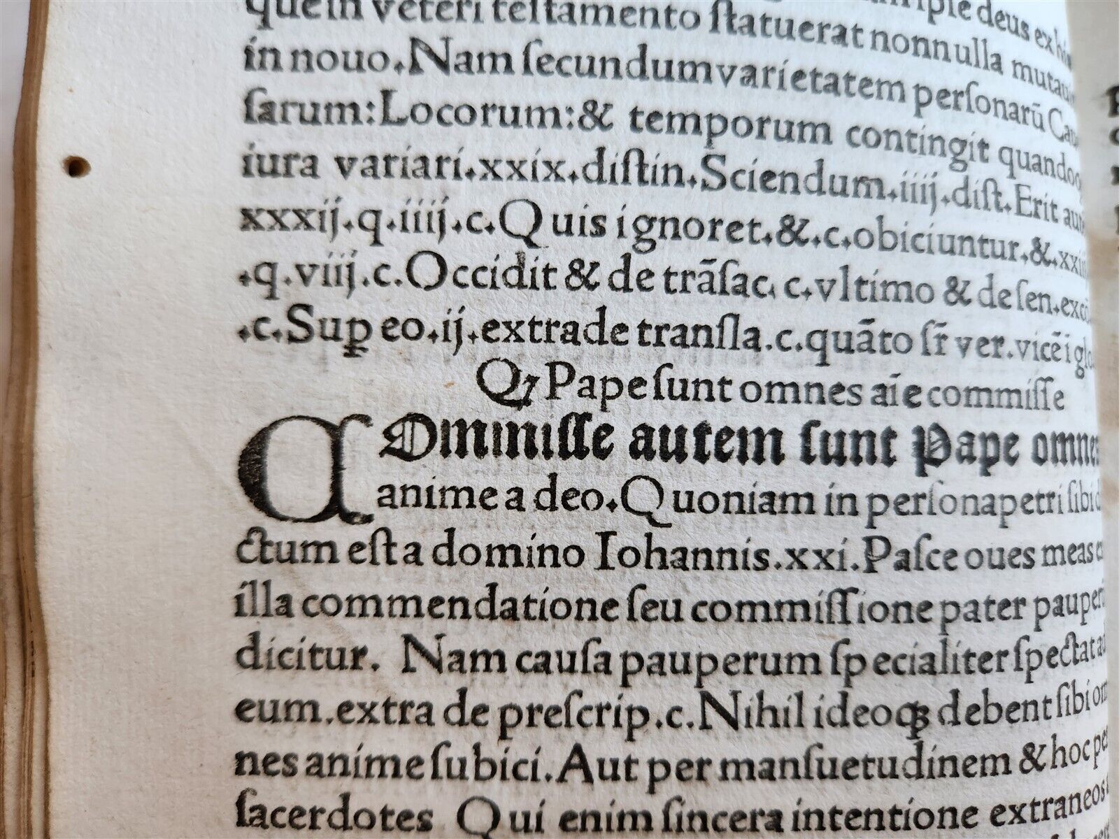 Hug von Schlettstadt, Johannes.Quadruvium Ecclesie Quattuor prelatorum officium Quibus omnis anima subjicitur. With title woodcut, 9 full page woodcuts and woodcut printer's mark at colophon Paris, Guillaume Eustace; August 1, 150984 lvs.Modern leather binding in contemporary style and new endpapers.Spine with raised bandsRich blind embossing on spine and covers and gold-stamped title page at the spine- BP16, 101350. ADB 13, 328. Brunet III, 366. Graesse VII, 385. - Very rare second edition with partial reuse of the woodcuts from the first edition of 1504 by Gruninger in Strasbourg. "Born around 1470 in Schlettstadt in Alsace, (Hug) (...) received his scholarly education at Dringenberg's school, later became vicar at the parish church of St. Stephen in Strasbourg and then chaplain to Emperor Maximilian I, who valued his insight and oratorical ability very highly. In this latter position he represented the Emperor's cause and wrote his canon law treatise, distinguished by his talent, natural frankness and erudition: 'Quadruvium Ecclesiae: the ecclesiastical four-horse team or the holy church and carriage driver of the Roman Empire' (...). The book, which was published in German and Latin at the same time (...) discusses the abuses prevailing at the Roman court with such frankness and biting satire that few writings of that time dealing with this subject can match it." (ADB 13) First 34 pp. with small wormhole in the margin. Very few period marginalia and underlining. Good copy in decorative binding.Size 5.5 by 8"Text in Latin==========================================Johannes Hug (also Johannes Hugo , Johannes Hugonis ; ( around 1455 in Schlettstadt - after 1505 probably in Strasbourg ) was a canonically educated clergyman and author who worked in Strasbourg==============================================Johannes (Hans) Grüninger (1455–1533) was a German printer whose career spanned from 1482 to 1533 and produced up to 500 publications. Gruninger was one of the single most prolific printers of Strasbourg, printing up to 80 books a year. While a great deal of his publications were Catholic, he managed to print a great variety of works ranging from humanist to scientific texts.[2] His work was fairly equally representative of both Latin and the vernacular; about 39% of his works were printed in Latin and the remaining 61% in German.Gruninger was born as Johannes Reinhart in 1455 in the town of Markgröningen, Wurttemberg (from which he took his name "Gruninger"). He learned about the printing trade in Basel before he moved to Strasbourg which was experiencing a boom in the printing industry.Between 1508 and 1528 about 70 printers had established themselves in Strasbourg.Gruninger had a head start on this competition and in 1481 he moved to Strasbourg. A year later bought his print shop and in August 1483, he printed his first book, Petrus Comestor's Historia Scholastica.Some of his notable publications include a German-language Bible, and illustrated editions of Horace's Opera, and Virgil's Aeneid.Gruninger died in 1532 and was succeeded by his sons Wolfgang and Bartholomew (primarily Bartholomew, who was also a printer albeit on a smaller scale than his father). As was common, his sons promptly sold the business to Peter Schoffer the younger in 1533 after being unable to maintain past production rates.==========================================Please see my other auctions Thank You