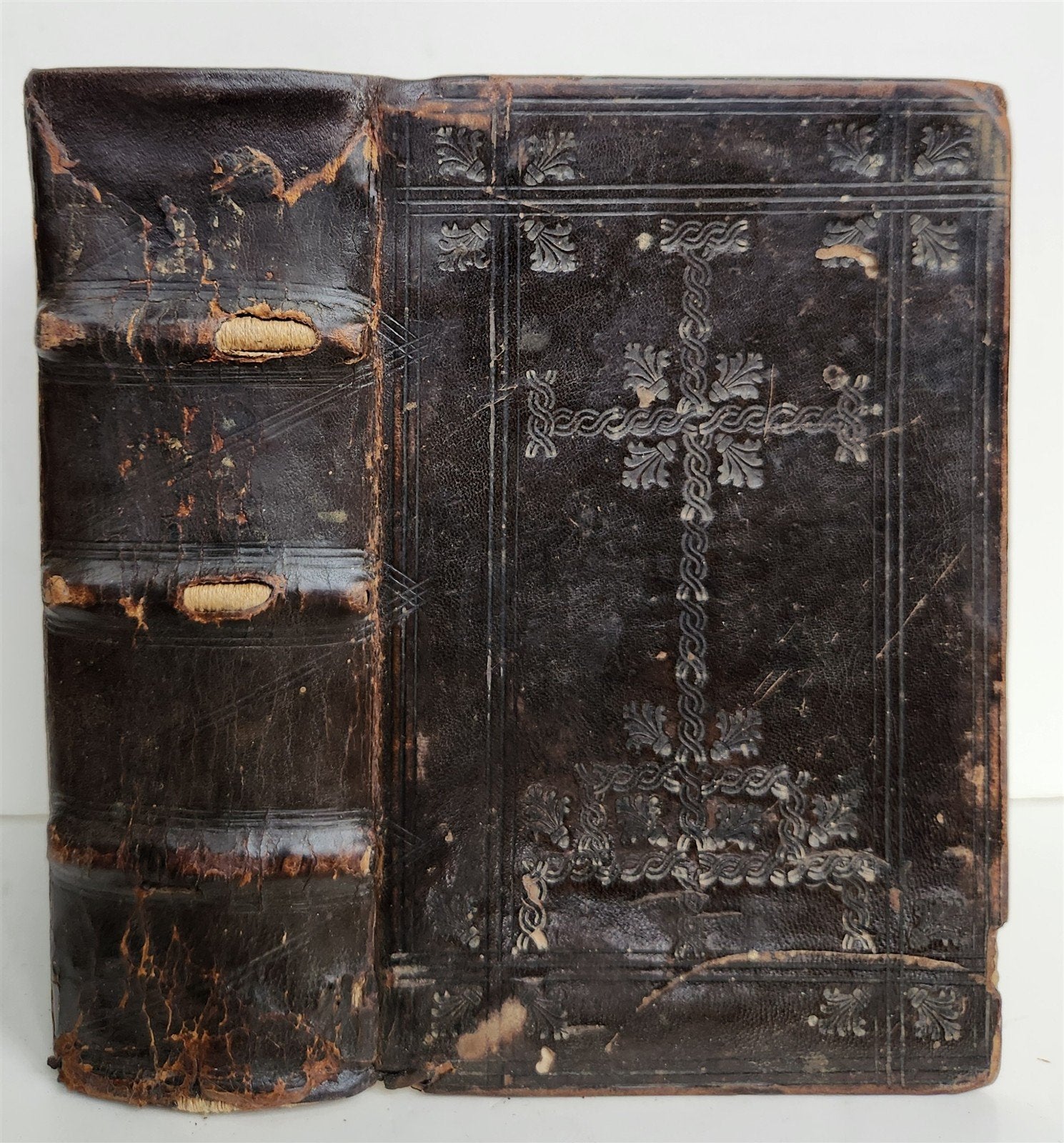 Original blind-stamped leather binding over wooden boards.