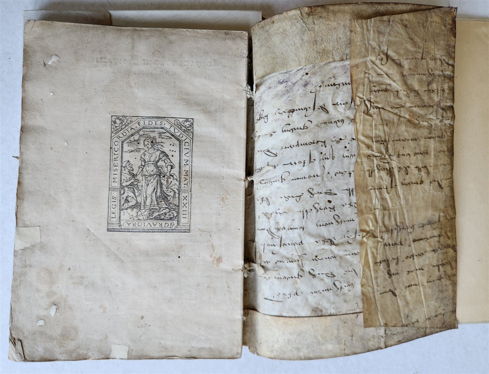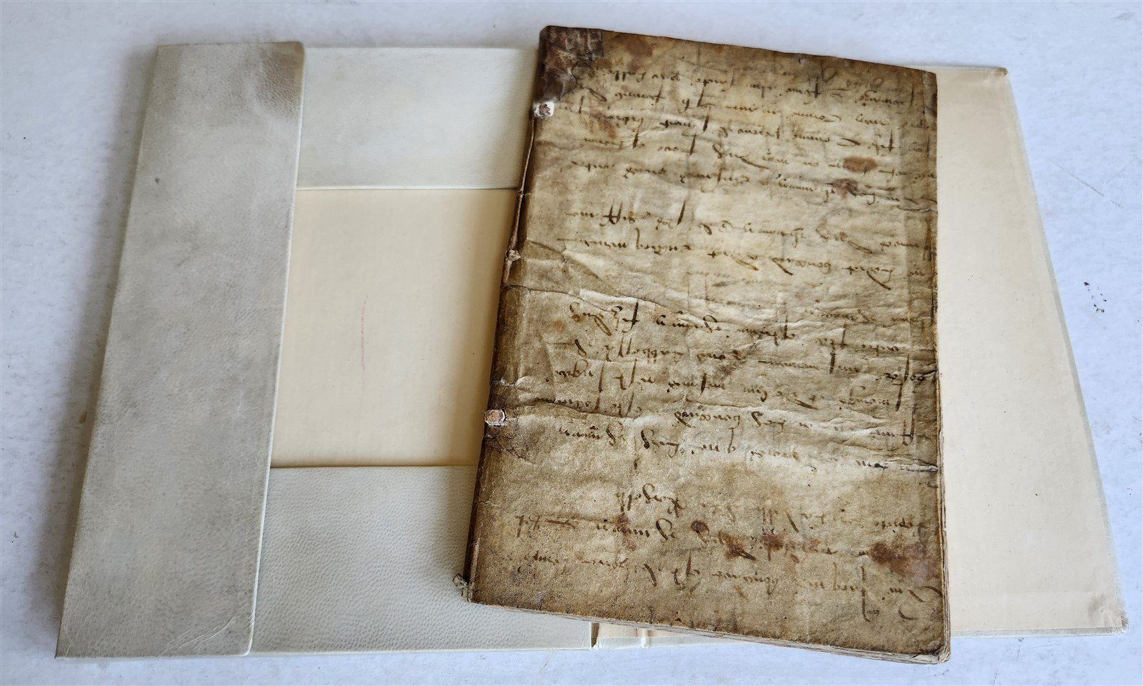 Binding made of early manuscript. Housed in modern vellum slip case.