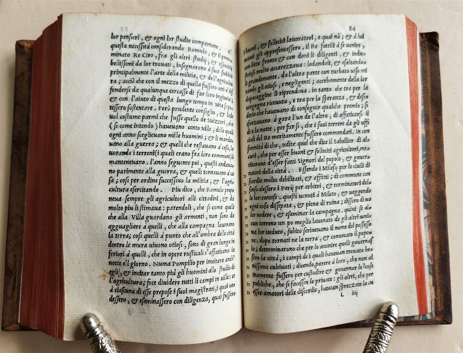 18th century leather binding (some wear), spine with raised bands, decorated in gilt, with title label. Marbled endpapers.