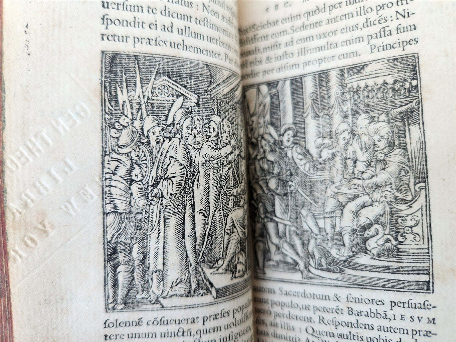 1549 BIBLE in LATIN ILLUSTRATED w/ 108 WOODCUTS antique RARE pocket size