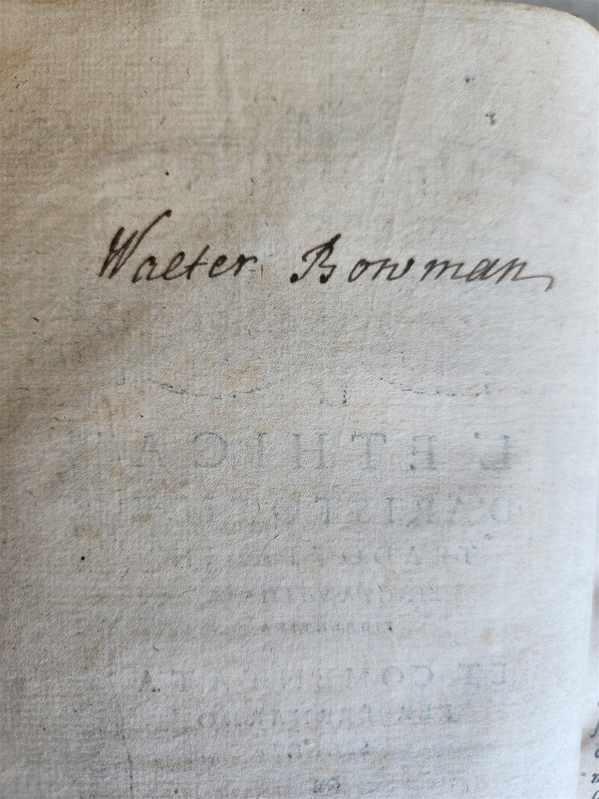 - Provenance: Walter Bowman (d. 1782, Scottish antiquarian). With his ownership note on the verso of the title