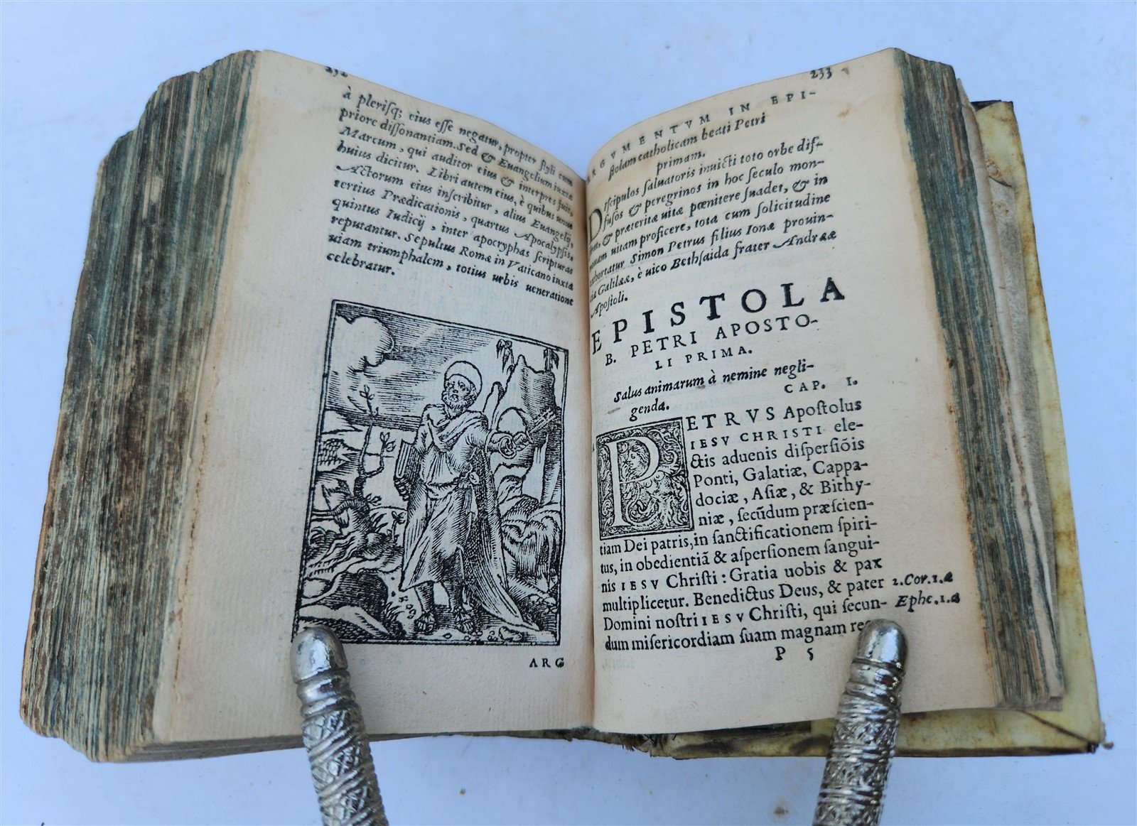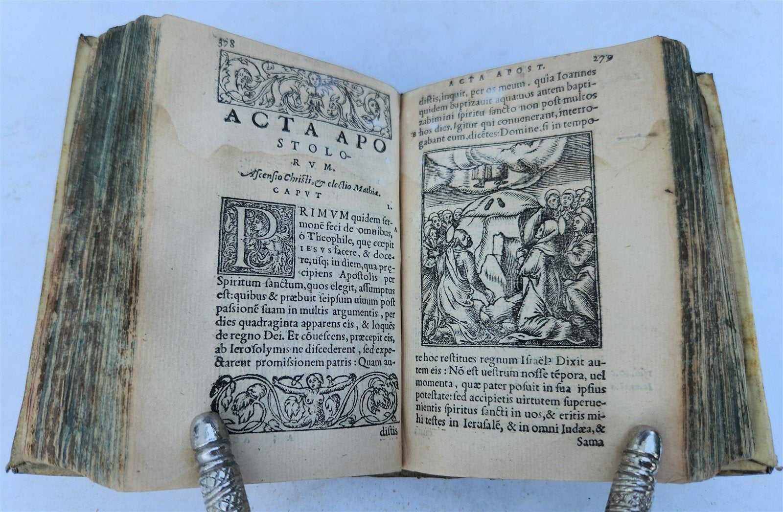 1551 BIBLE in LATIN ILLUSTRATED w/ 108 WOODCUTS antique RARE pocket size VELLUM