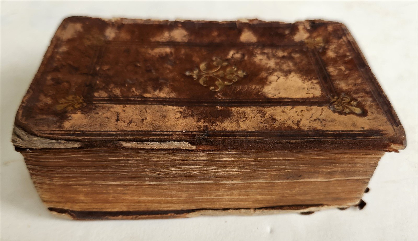 Original full calf, decorated in gold in the center of the covers and corner pieces.