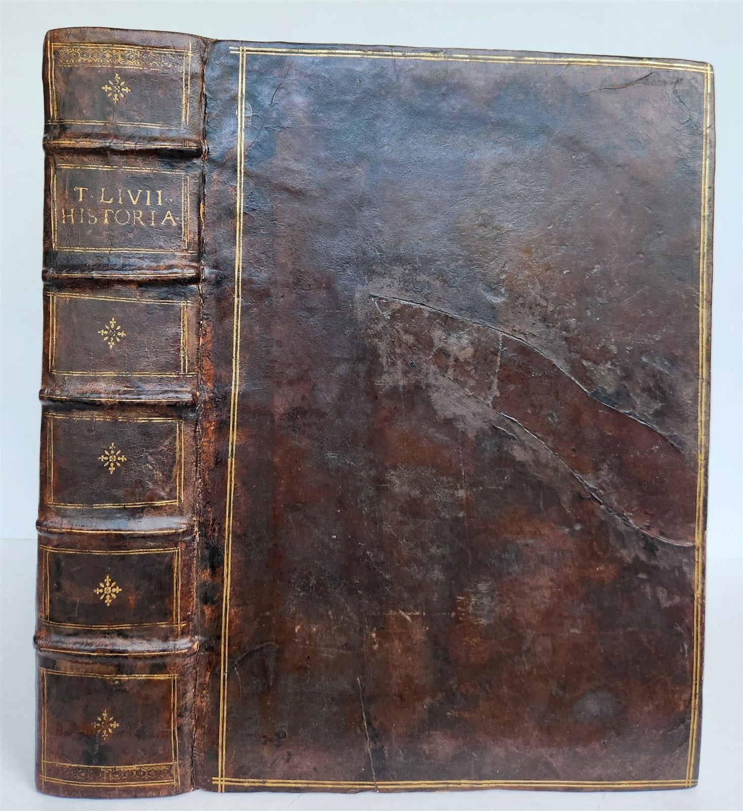 T. Livii Patavini historiarum ab urbe condita, Libri, qui extant, XXXV.Cum Universae Historiae Epitomis, a Carolo Sigonio Emendati [...]Venetiis, Apud Paulum Manutium, Aldi F., 1555[4]-478 lvs.Full calf, decorated ribbed spine, double gilt fillet framing the covers (restored)"For the beauty of the characters as much as for that of the print and the paper, this edition is goodpreferable to the various more or less petty reprints given by the Aldes in 1566, 1572, and 1592." Brunet.With ex-libris of Maurice Chardon du Rauquet to the front pastedownPart of the pages dampstained. Upper margin of the title page repaired(Renouard, 166-15; Brunet III, 1106).Folio. Size 9 1/2 by 13 1/4 inchesText in Latin==========================Please see my other auctions Thank You