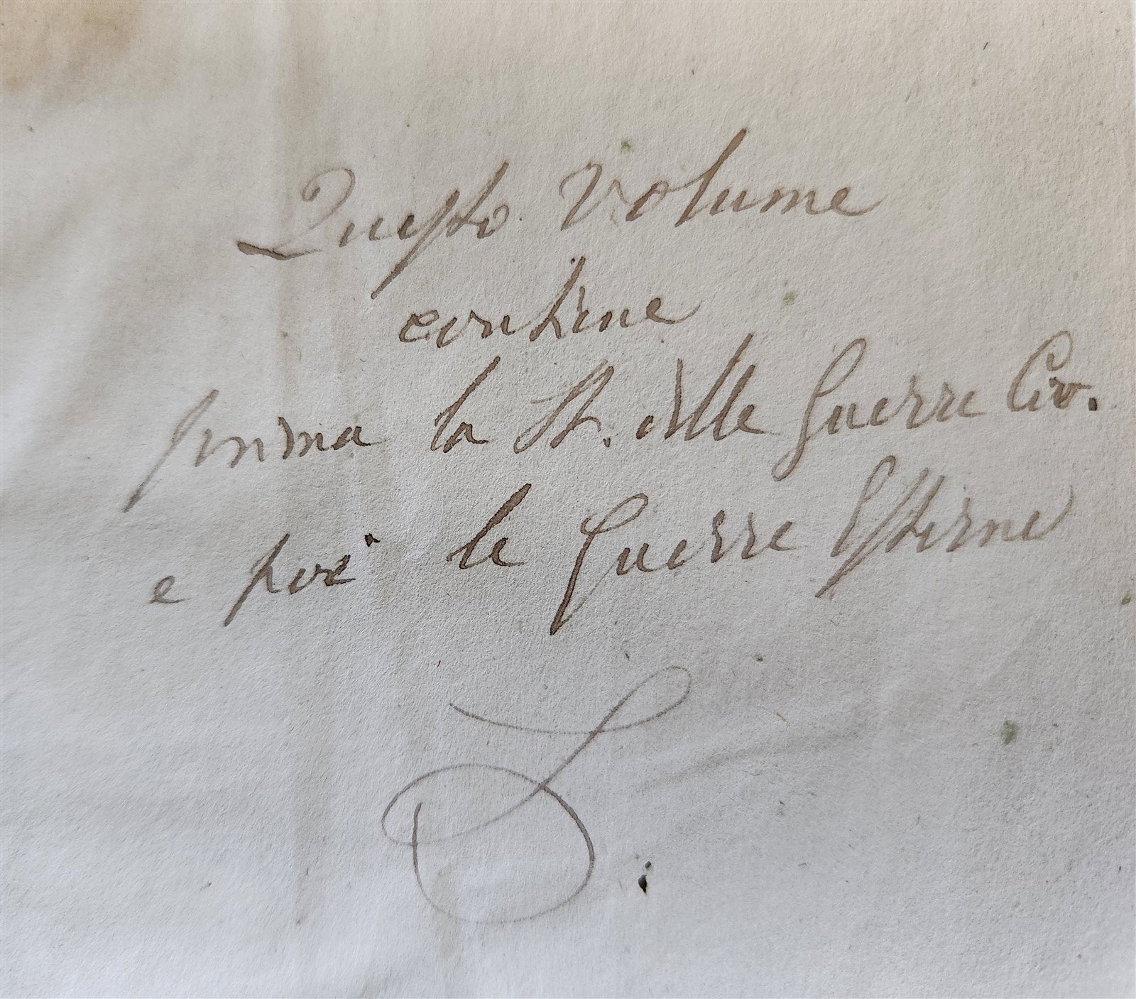 Late manuscript with back title (heavily damaged, edges scraped, chapter with minor blemishes). - Interior pages chipped, browned, stained in places. Title with handwritten annotations.