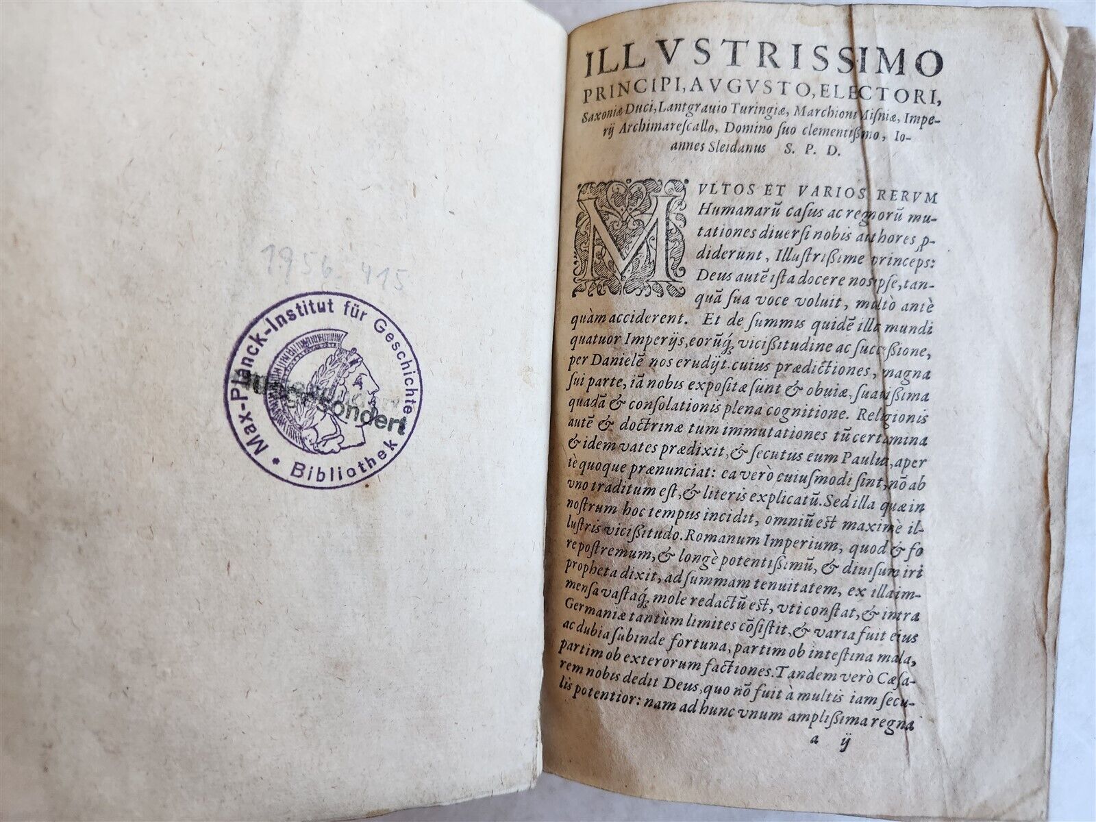 Johannes Sleidanus' account of the history of the Reformation, first published in 1555, here in an early Strassburg edition printed by Rihel.