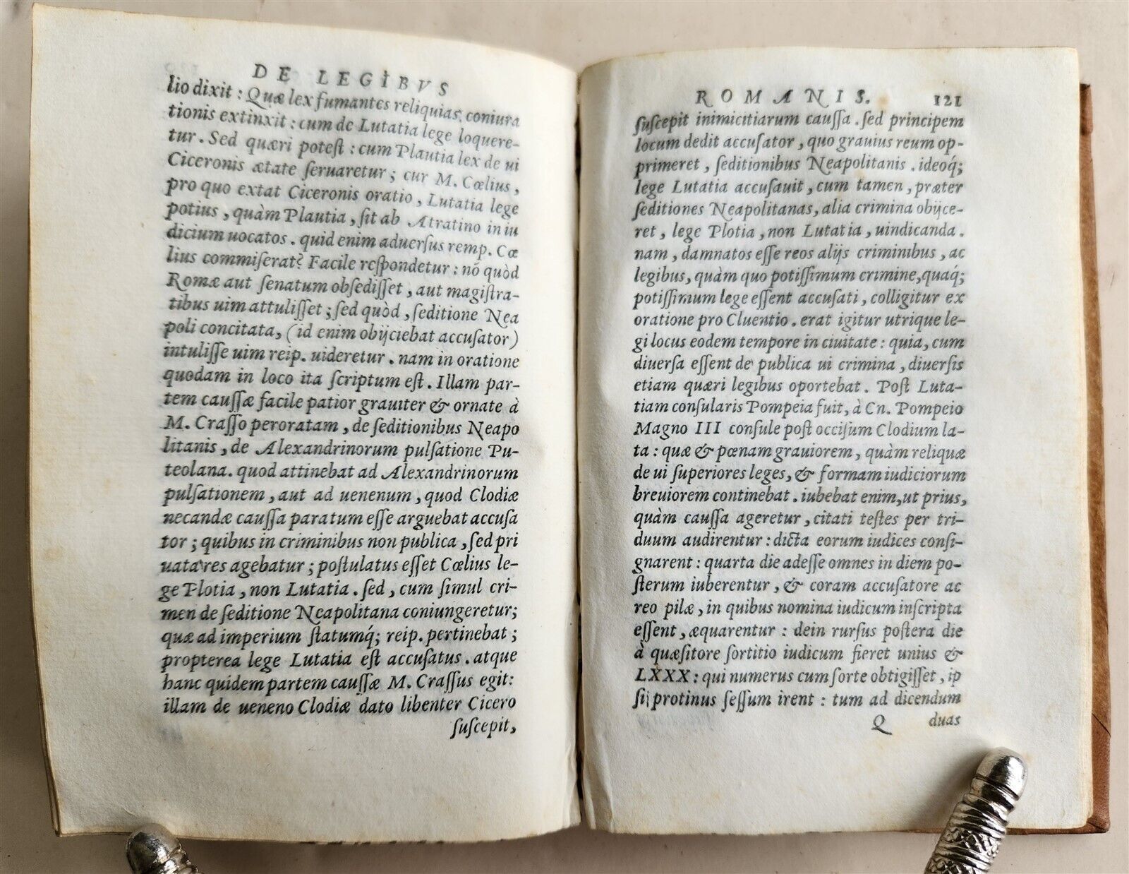 MANUZIO, Paolo. Antiquitatum romanarum...liber de legibus. Venice: Aldo; 1559Aldine device to title page and colophon 18th century half-leather binding with date and gilt title to spine.Size 4 by 5 3/4 inches170 lvs. (=340 pp.), plus extensive indexText in Latin=================Paulus Manutius (1512 – 1574) was a Venetian printer with a humanist education, the third son of the famous printer Aldus Manutius and his wife Maria Torresano================Please see my other auctions Thank You