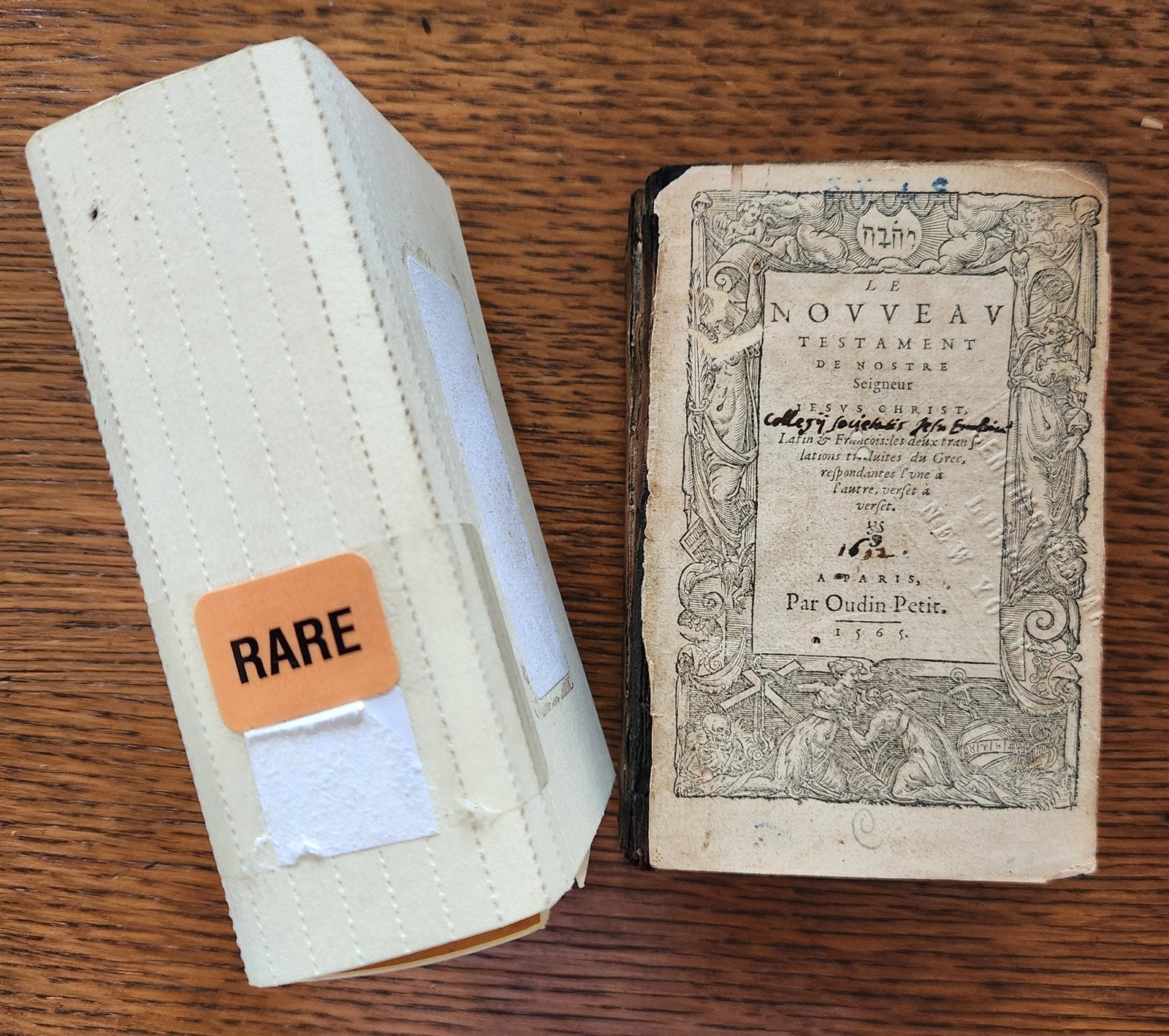 1565 BIBLE in FRENCH ILLUSTRATED antique RARE pocket size LE NOUVEAU TESTAMENT