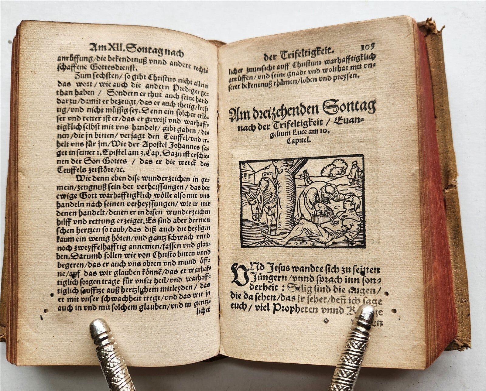 1566 MELANCHTHON Philippe Postill uber die Evangelia ANTIQUE pigskin ILLUSTRATED