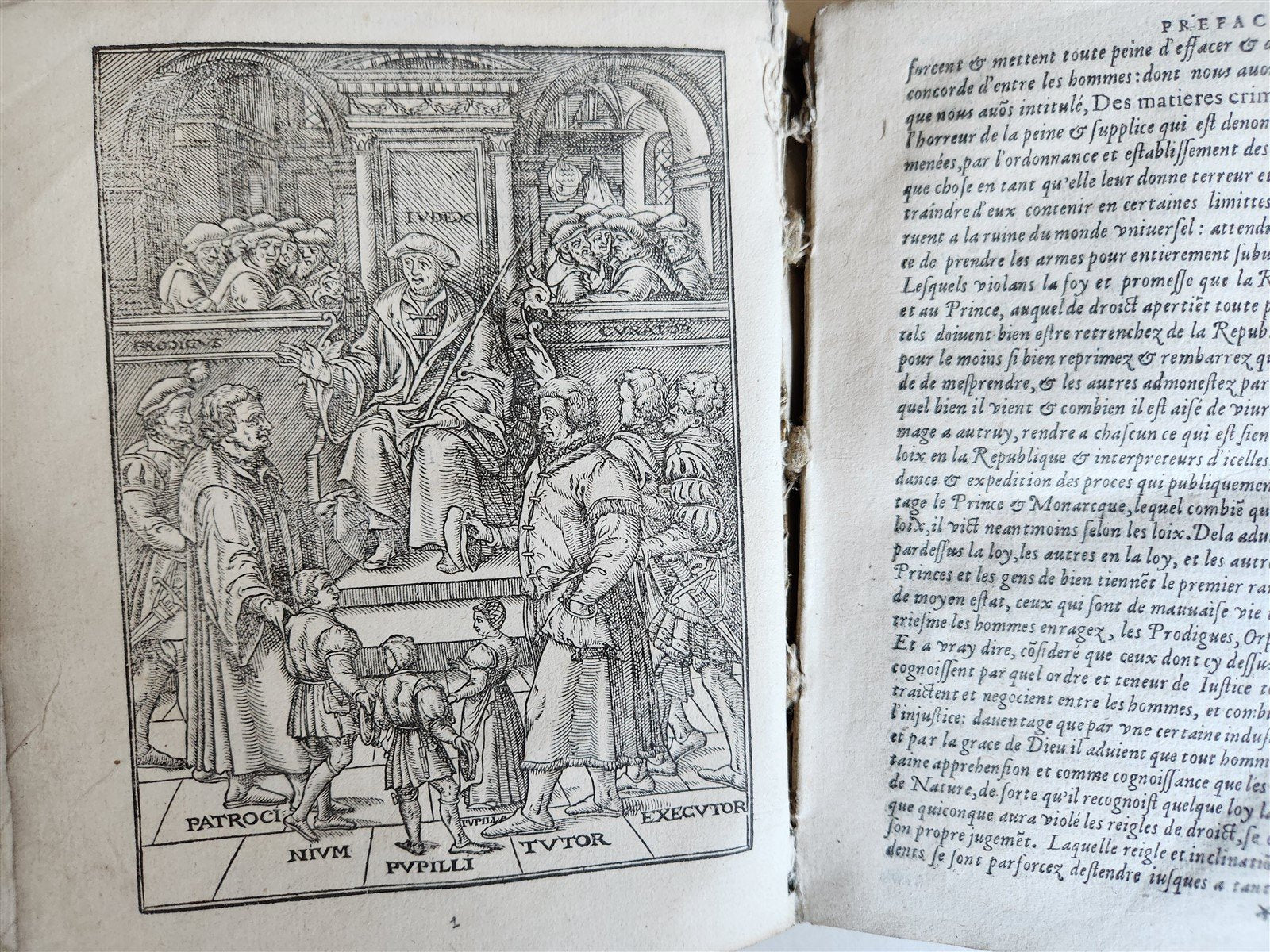 frontispiece portrait and 9 full-page woodcuts (depicting scenes from courts of justice or offices with often picturesque details: children, dogs, scenes of torture in the background, etc.).