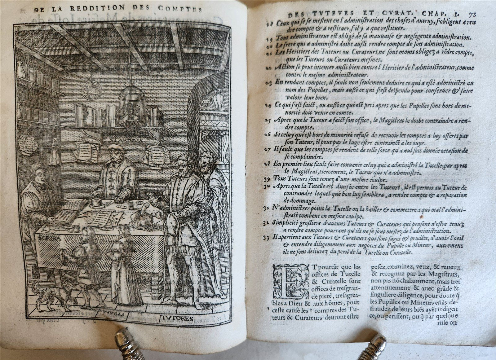 ORIGINAL EDITION of the French translation (in the colophon ‘Brussels 11 October 1566’) of the “Patrocinium pupillorum” (Bruges, 1544), a treatise on the management of property, guardianship and curatorship composed by Joseph de Damhoudere (1507-1581), Flemish jurist, financial advisor to Charles V and Philip II for more than thirty years; also well known as the author of the “Practique et enchiridion des causes criminelles” and the “Practique judiciaire des causes civiles”