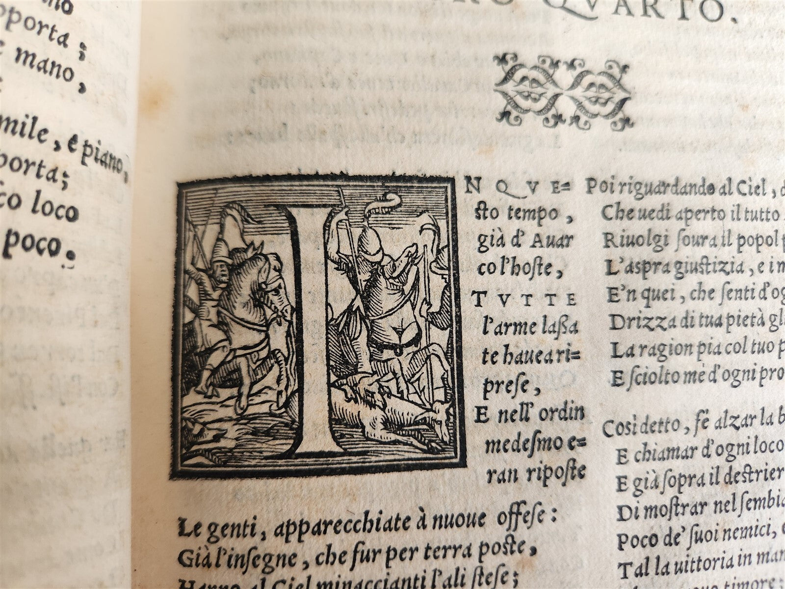 Luigi Alamanni La Avarchide del s. Luigi Alamanni Florence; 1570Full vellum binding, title label to the spinedecorative endpapers[8], 325 pp.The Avarchide is an epic-mythological poem, a reinterpretation of the Homeric and Virgilian epics. The structure is taken from the Iliad, while the plot, of French influence, is influenced by the cultural influences assimilated by the poet at the court of Francis I. A student of the philosopher Francesco Cattani da Diacceto and a member of the Florentine Platonic Academy, Alamanni had an adventurous life, mostly spent far from his Florence, engaged and involved in conspiracies and attempts to overthrow the Medici power.Toning, foxingSize 6 by 8.5 inchesText in Italian=====================================Please see my other auctions Thank You