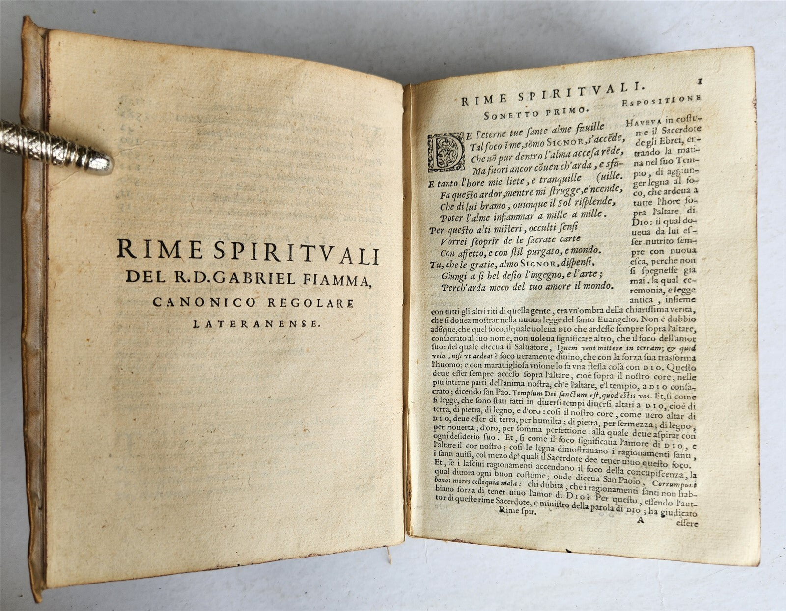 1570 RIMI SPIRITUALI by Gabriel FIAMMA antique 16th CENTURY VELLUM BINDING