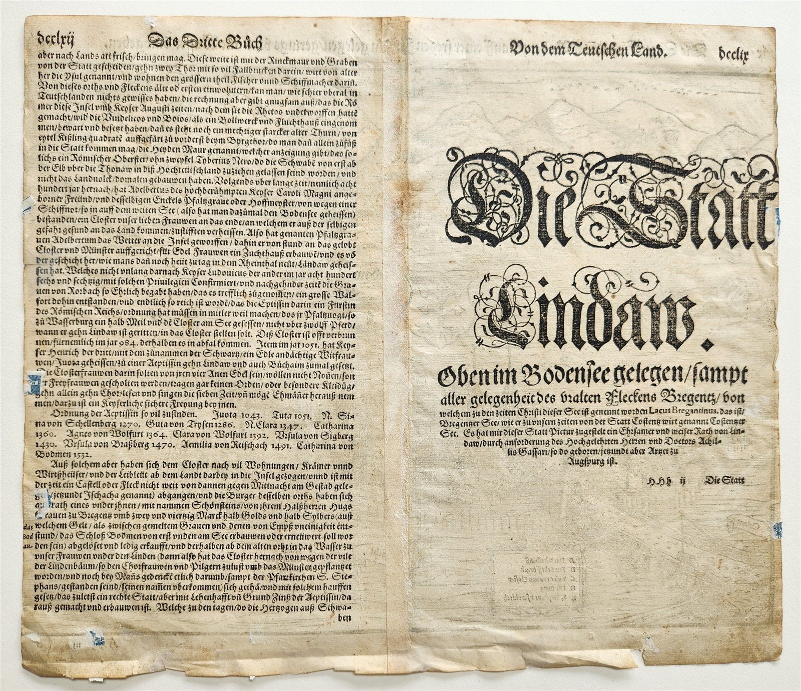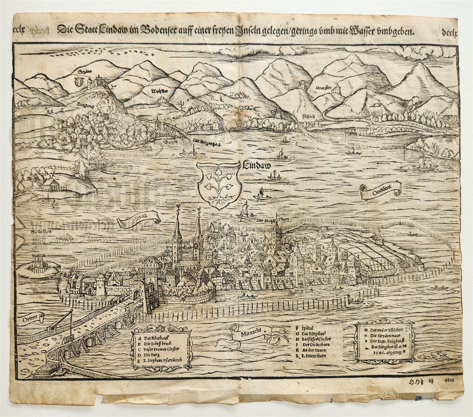 1572 LINDAU GERMANY MAP from SEBASTIAN MUNSTER COSMOGRAPHY antique