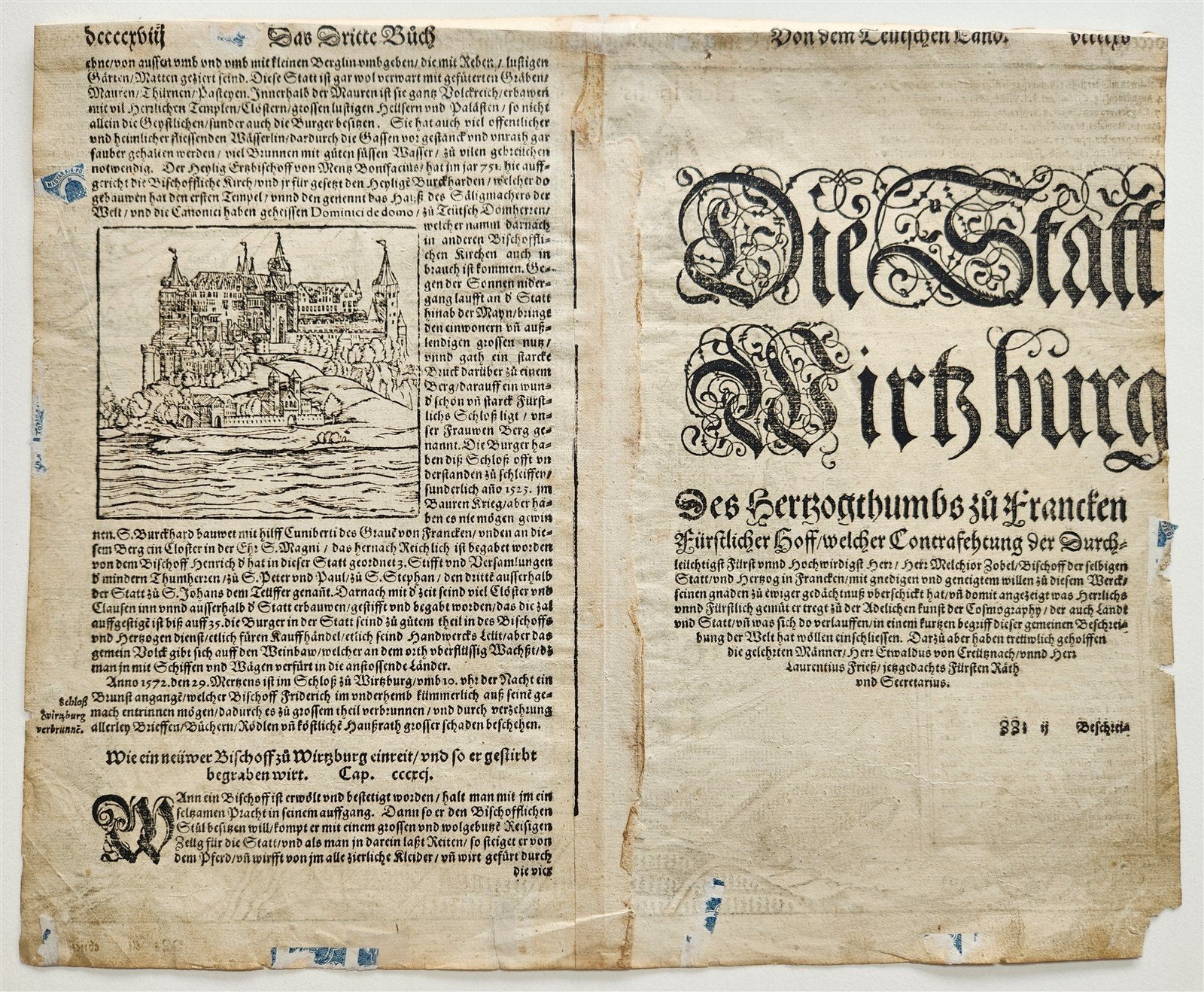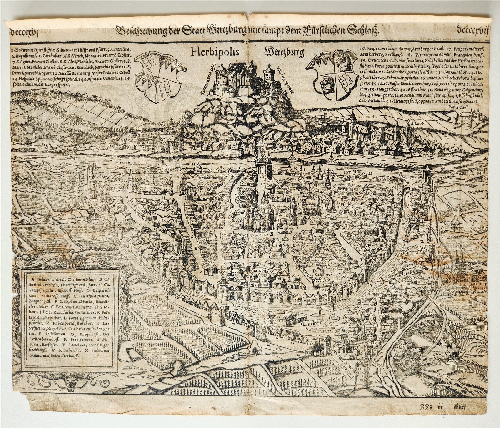 1572 WURZBURG GERMANY HERBIPOLIS MAP from SEBASTIEN MUNSTER COSMOGRAPHY antique