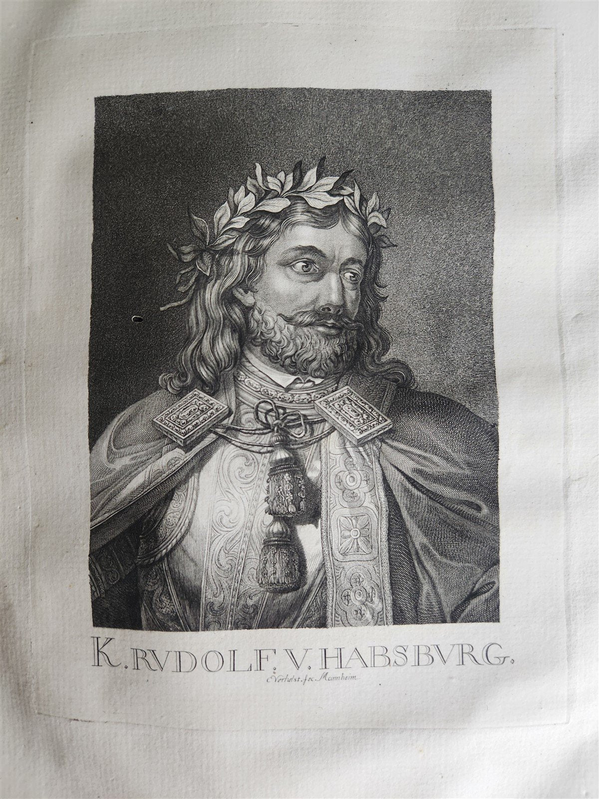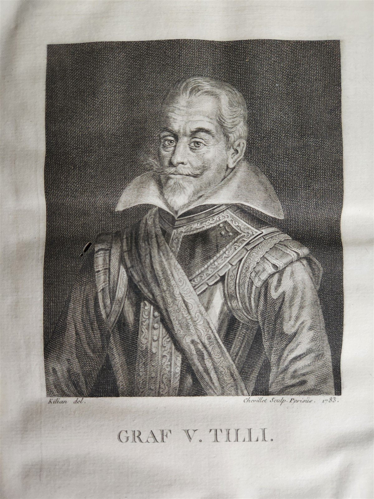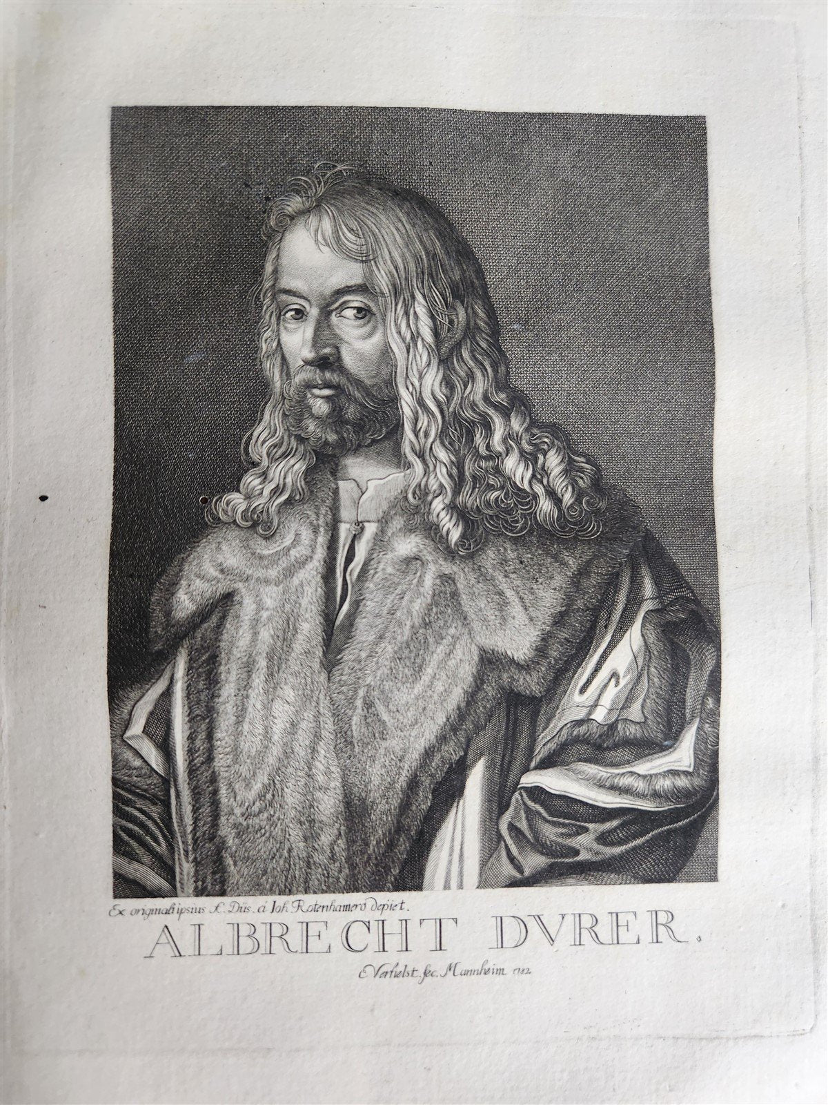 Among the portraits are Leibniz, Durer, Wallenstein, Mengs, etc. – missing the first title engraving.