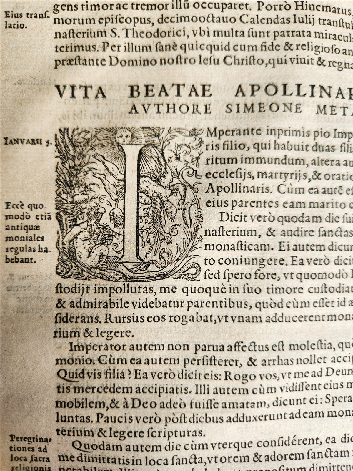 The first volume of the main work by the Cologne Carthusian; a collection of saints' lives, arranged according to the days of the year (here: January to February)