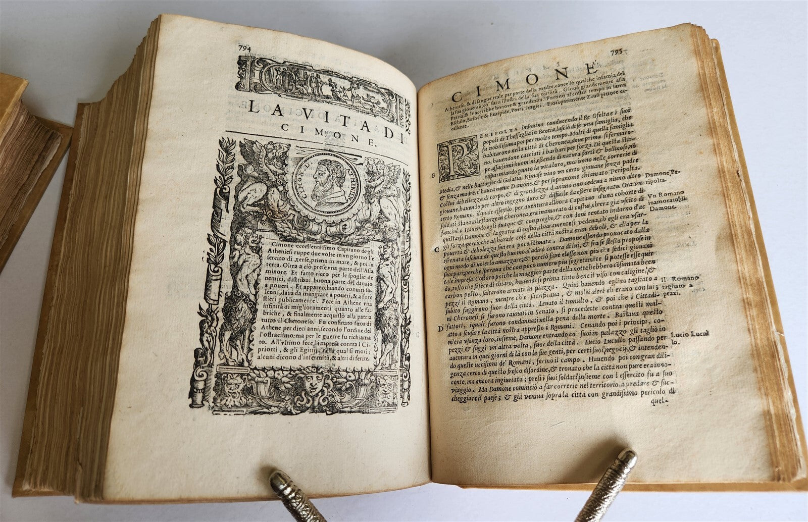 1582 PLUTARCH LIVES of ILLUSTRIOUS GREEK & ROMANS 2 VOLUMES antique ILLUSTRATED