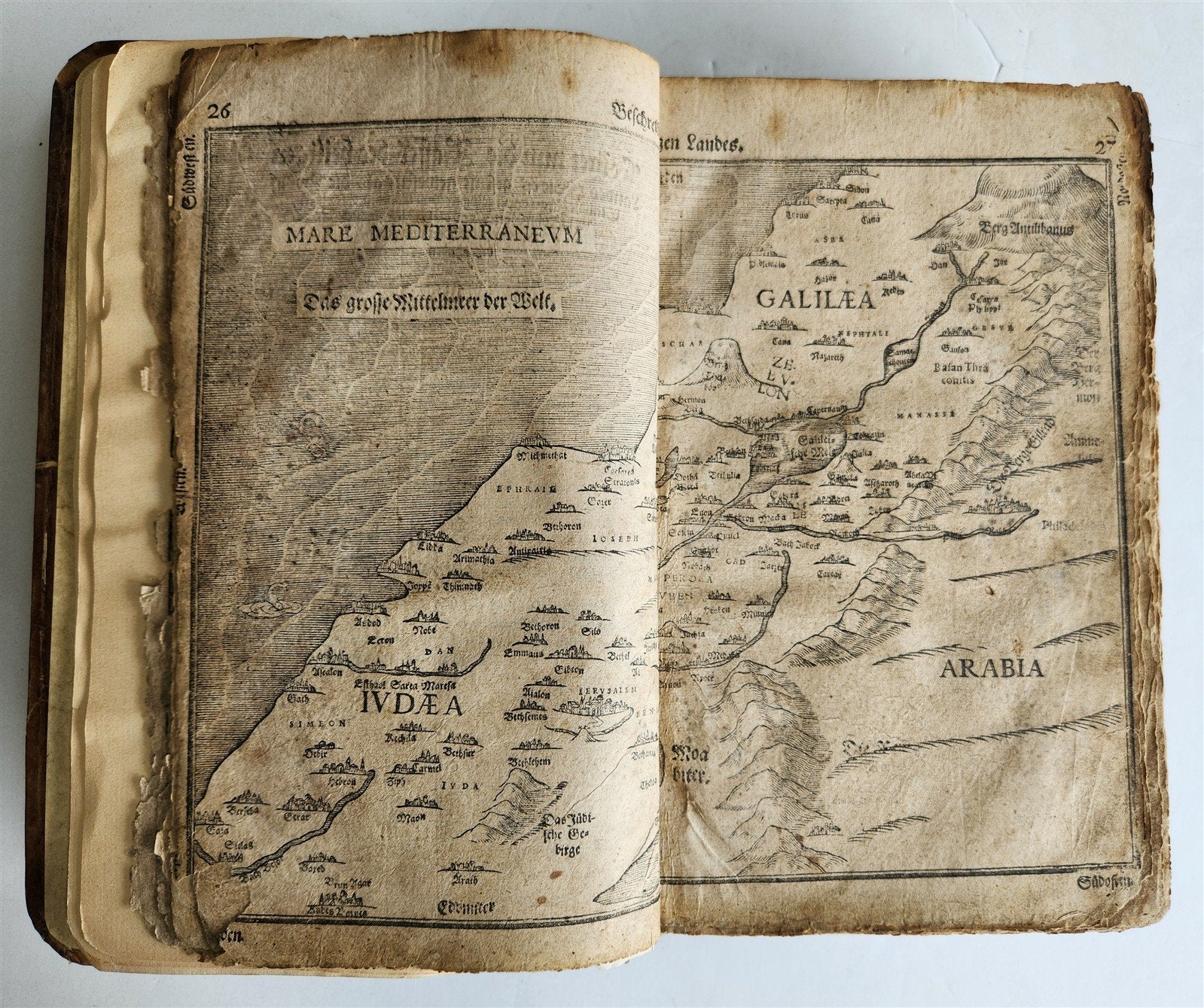 1586-1606 TRAVEL GUIDE TO BIBLE in GERMAN antique ILLUSTRATED rare FOLIO
