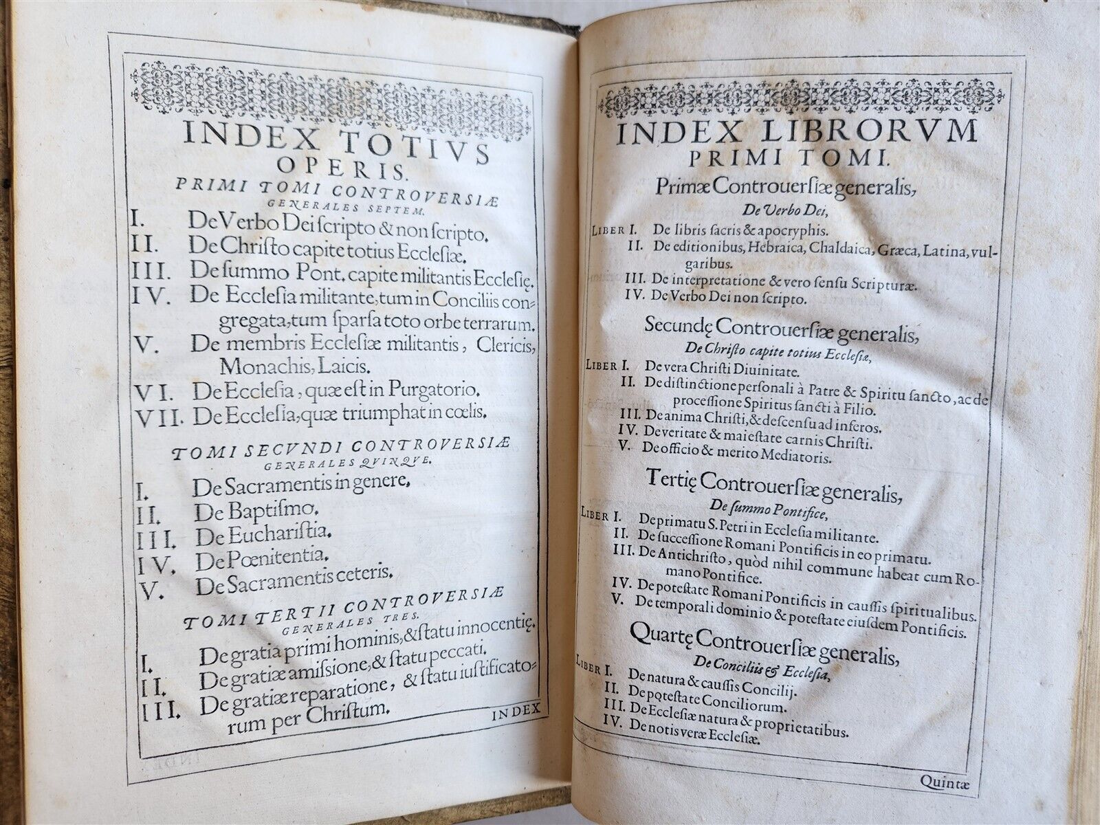 1586 DISPUTATIONES AGAINST HERETICS ROBERTI BELLARMINI antique PIGSKIN FOLIO v.1