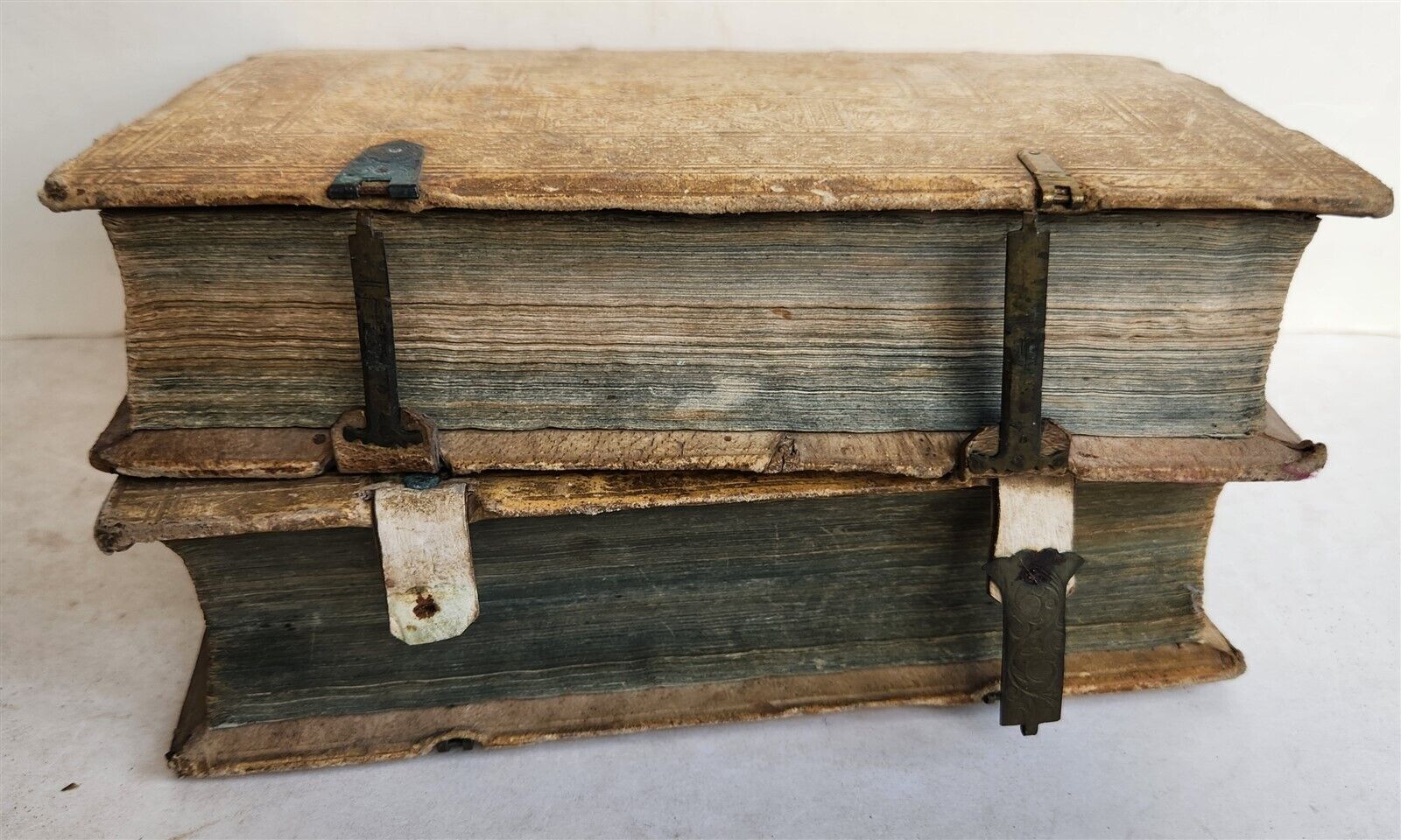 1588 SERMONS of PORTUGUESE THEOLOGIAN F. DIAZ 2 VOLUMES antique PIGSKIN BINDING