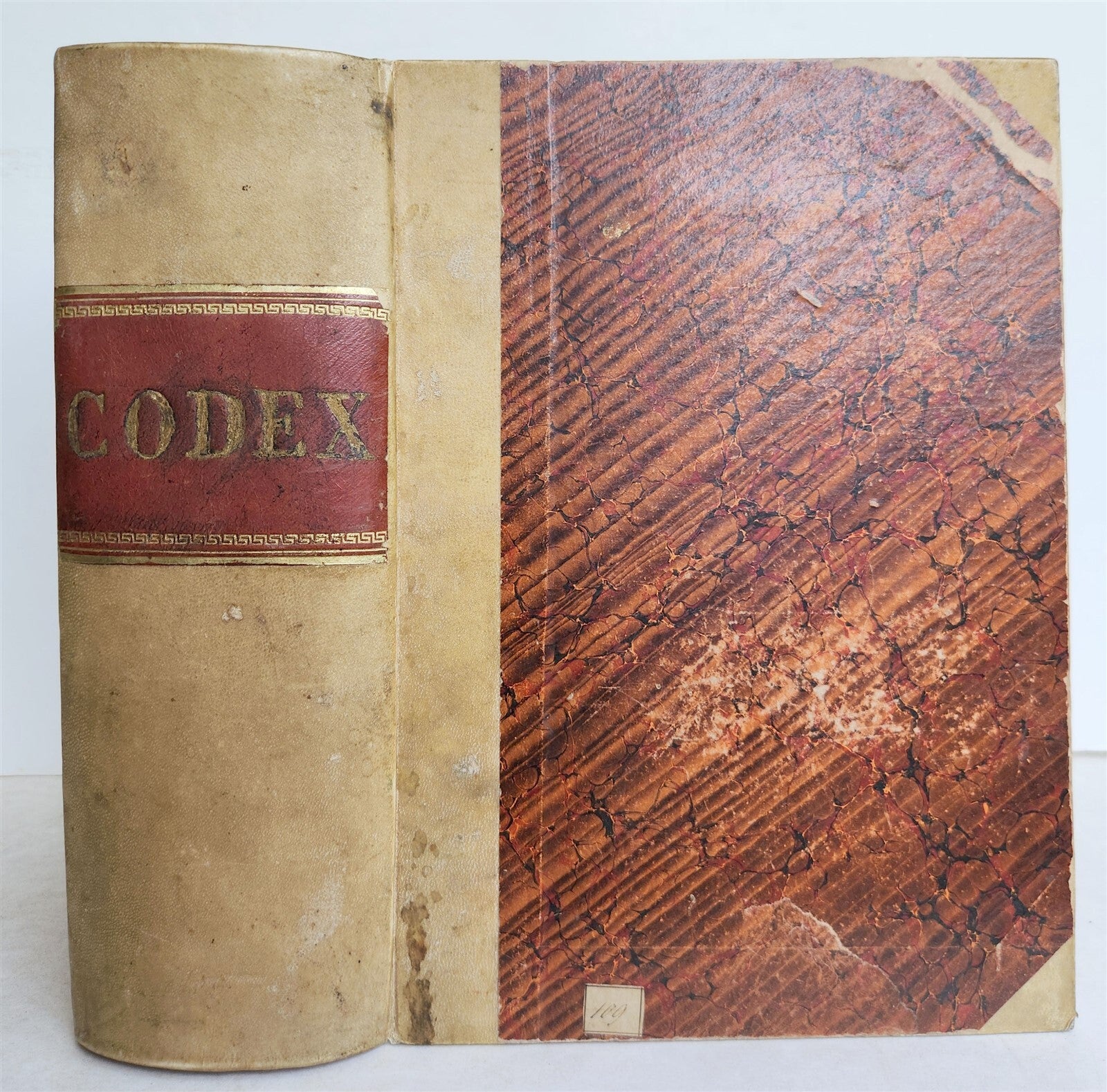 Codicis Domini Iustiniani, Constitutiones imperiales complectentisVenice; 1591Woodcut vignette on the title page with titles in red and black,text in red and black with engraved initials, decorated drop caps, some dampstains and repairs on the first the title page and first few leavesLater 3/4 vellum binding, gilt title on the spine. Size 7 1/4 by 9 3/4 inches[9], 1488 , [26] pp.Text in Latin======================================Please see my other auctions Thank You