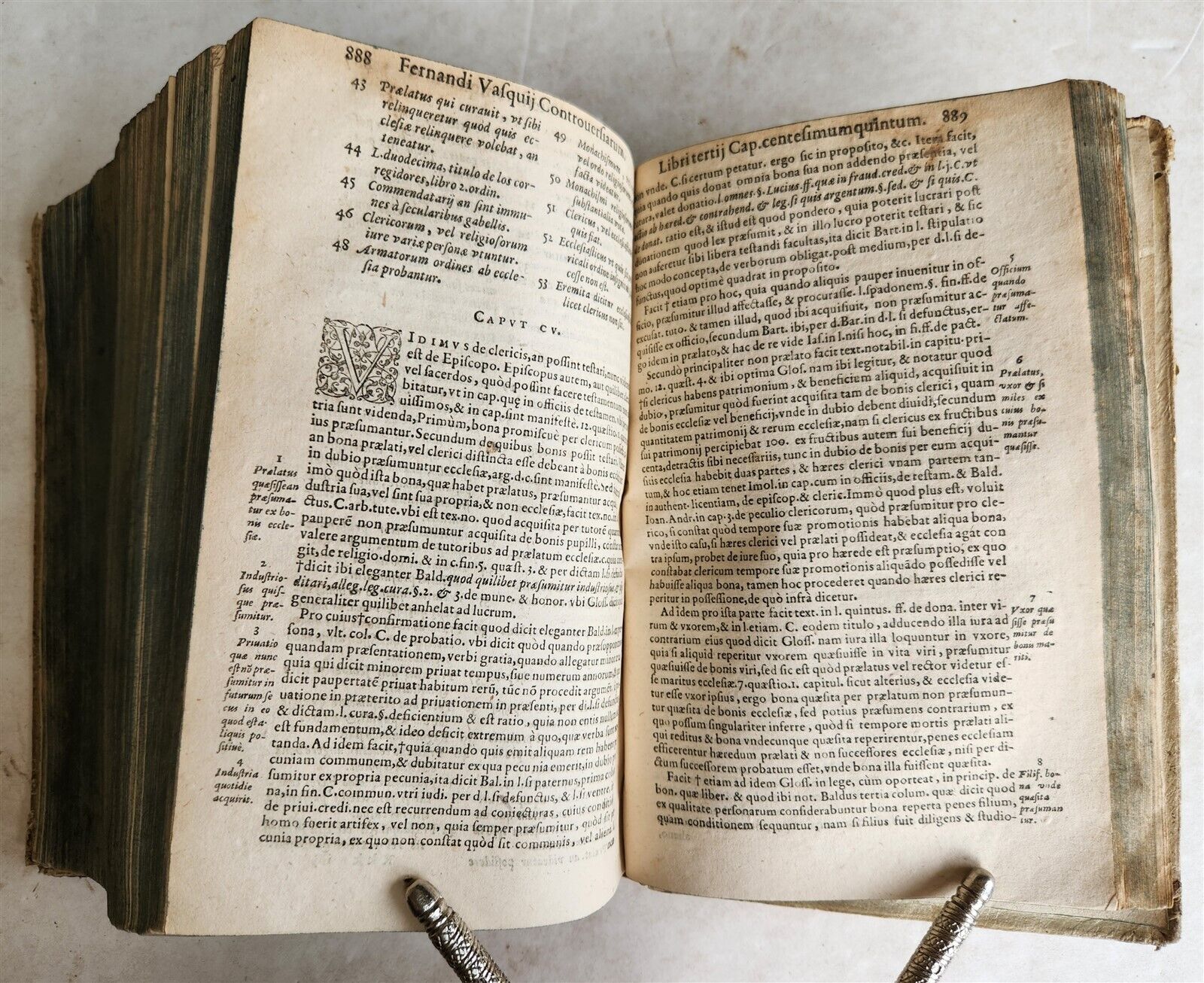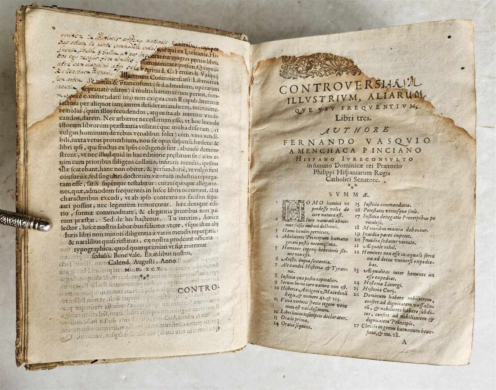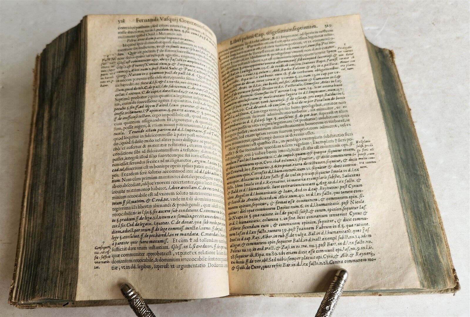 1595 LAW BOOK by Spanish jurist Vasquez de Menchaca antique PIGSKIN BINDING