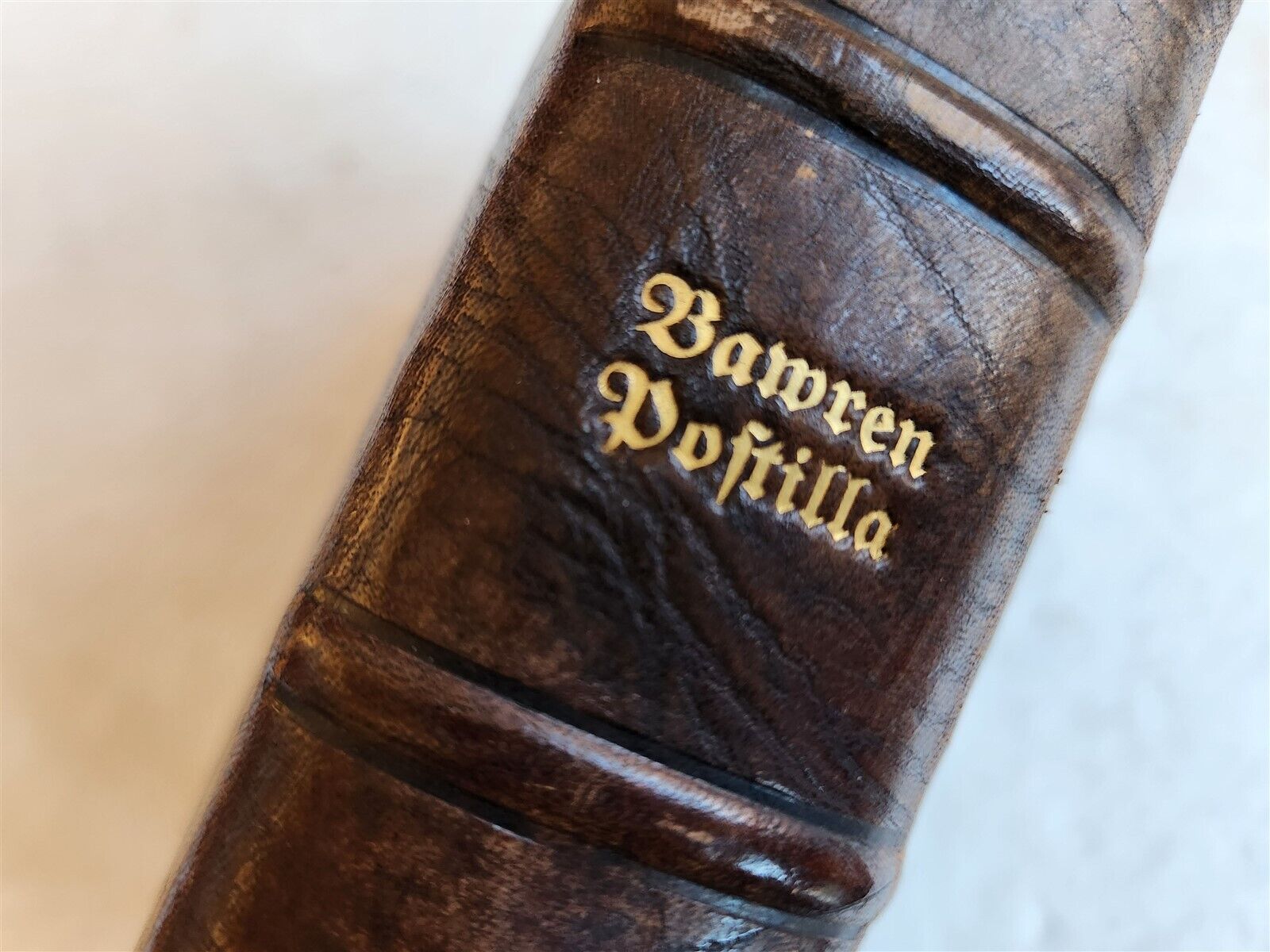 Osiander, LucasBawren Postilla. das ist, Einfaltige, jedoch grundtliche Ausslegung der Episteln und Evangelien, welche von allters her, an Sonn und Feyrtagen, auch auff die hohe Fest, erklart werden. (Bawren Postilla. that is, simple but thorough interpretation of the epistles and gospels, which have been explained since ancient times on Sundays and holidays, including on the high feasts)Parts I-III in one volume. Title in red and black. Tubingen, Georg Gruppenbach; 1598-1600Size 6 1/2 by 8 1/4"1 leaf, 220 pp., 1 leaf, 1 leaf, 219 pp., 1 leafLater brown leather binding over wooden boards, with 2 brass clasps;the blind-embossed pigskin cover is mounted in the inside front board.Very good condition, some toningtext in German===========================Lucas Osiander (1534-1604) was parish priest at St. Leonhardt from 1560 and court preacher in Stuttgart as early as 1567. He was considered one of the most contentious Protestant theologians in Wurttemberg, with some rough tendencies===========================