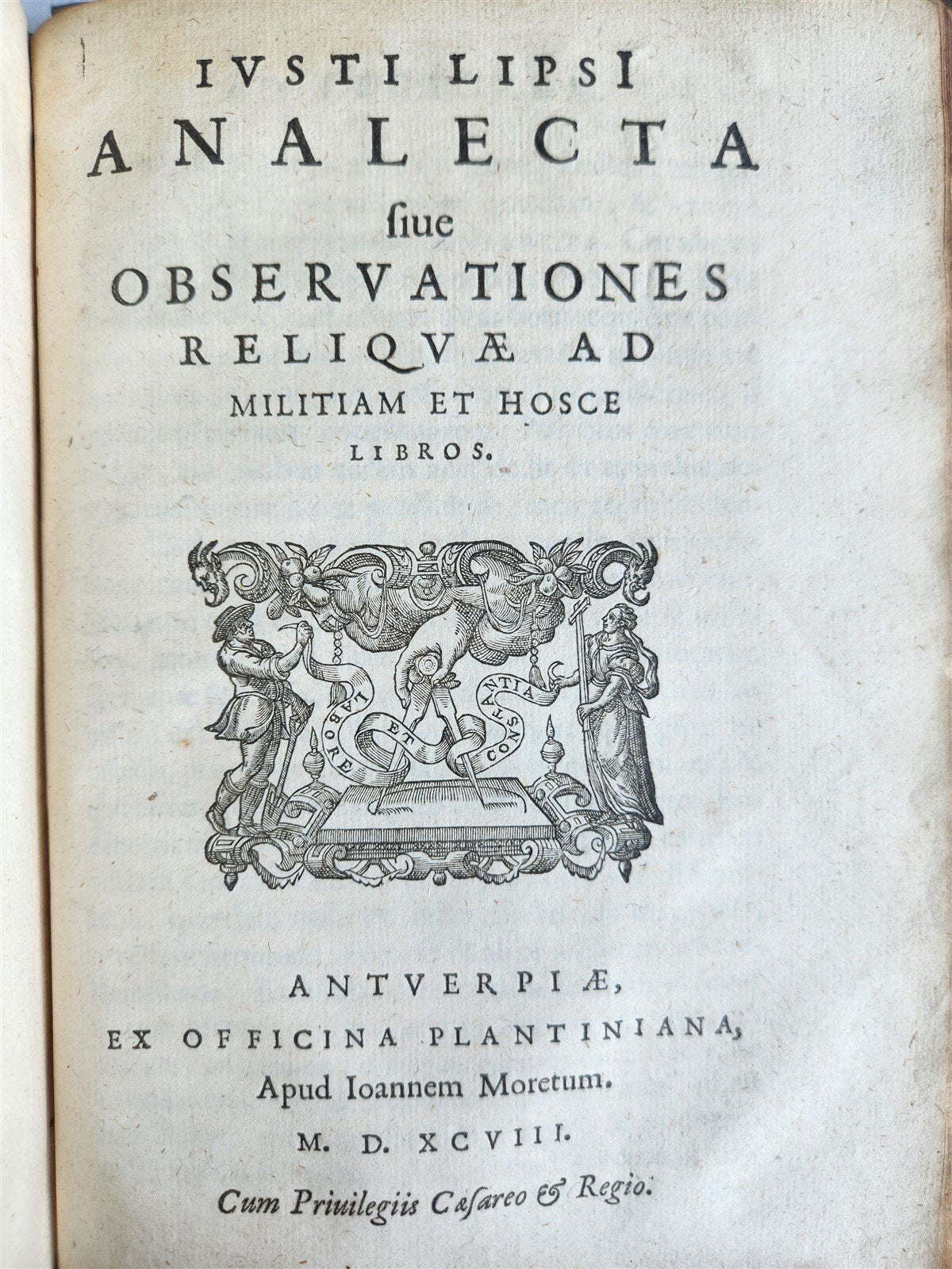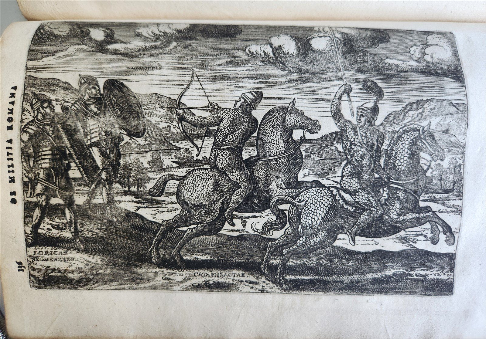 1598 DE MILITIA ROMANA by LIPSIUS antique ILLUSTRATED WARFARE Plantiniana vellum