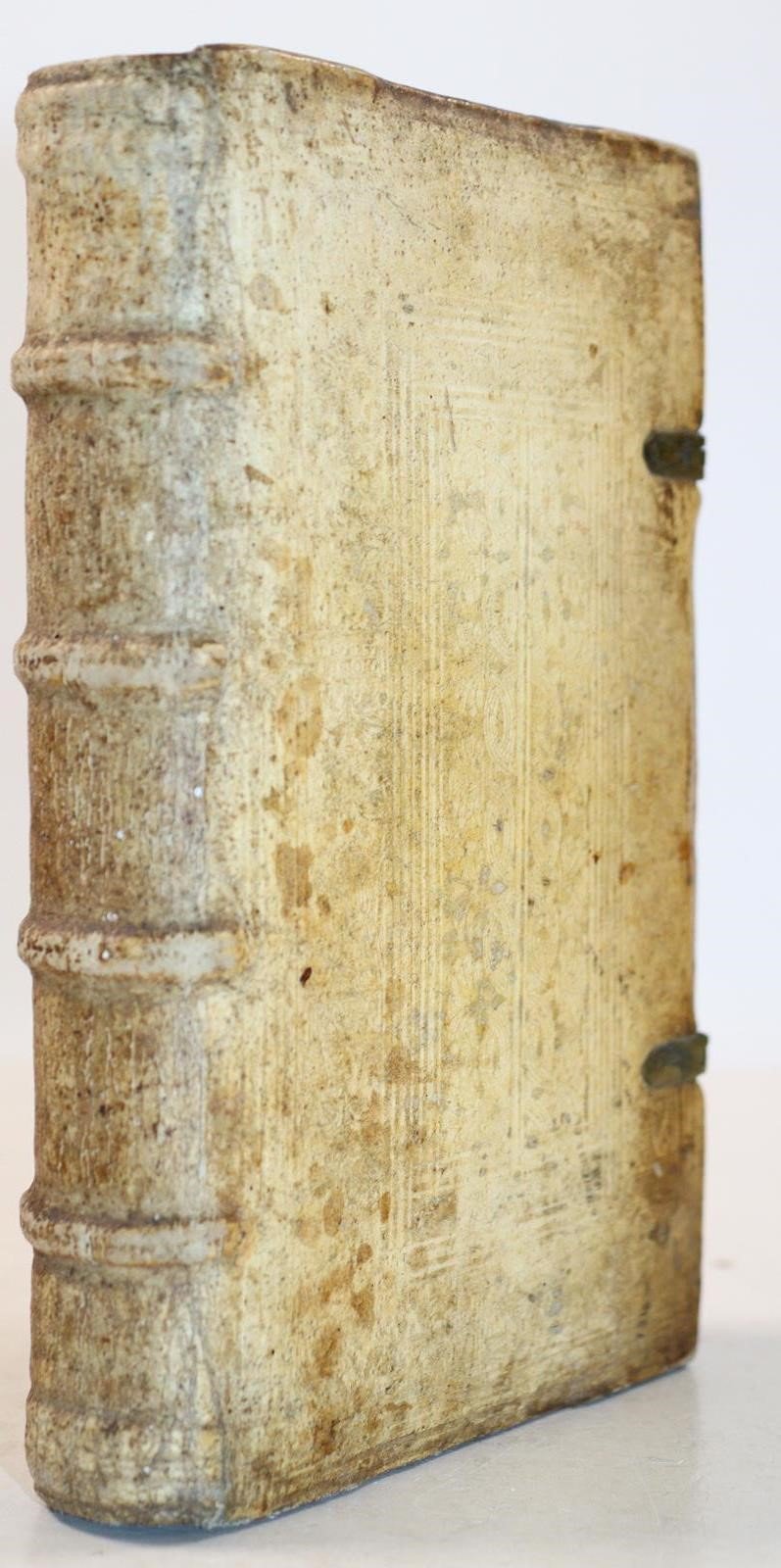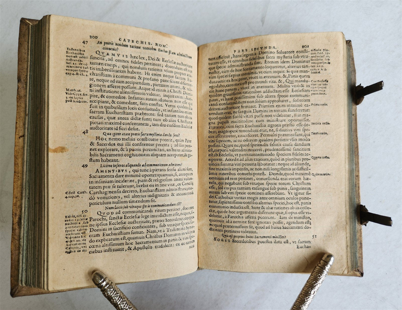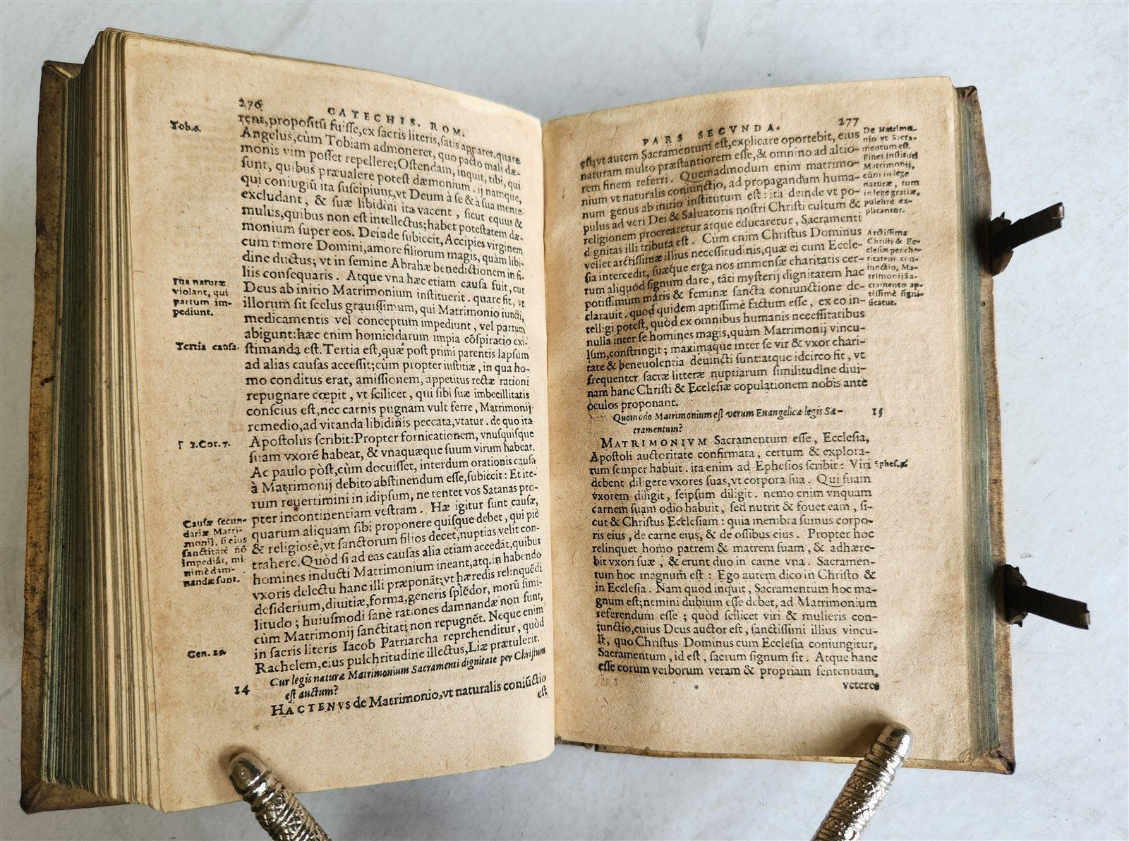 1601 CATECHISMUS by PLANTIN PRESS antique PIGSKIN over WOOD BINDING w/ CLASPS
