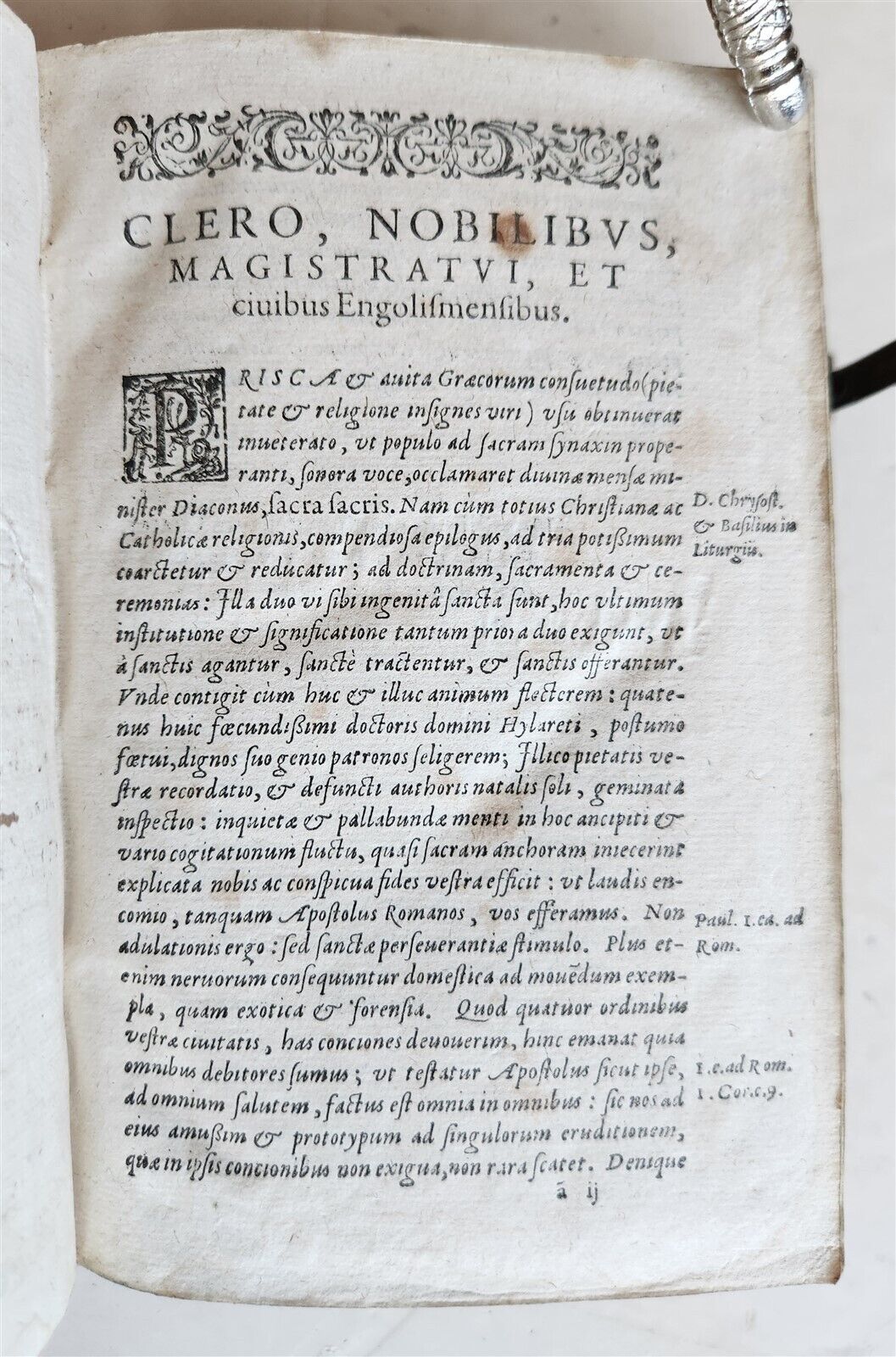 1604 SERMONS of Maurice Hylaret antique PIGSKIN BINDING UNICORN TITLEPIECE