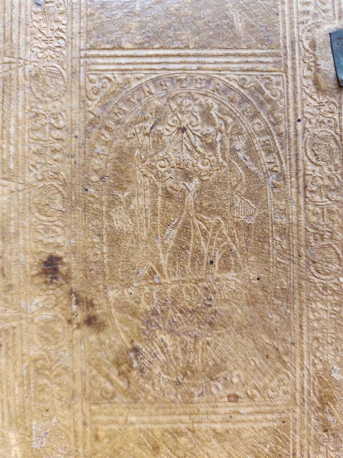 Original blind-stamped pigskin over wooden boards (1 clasp broken)