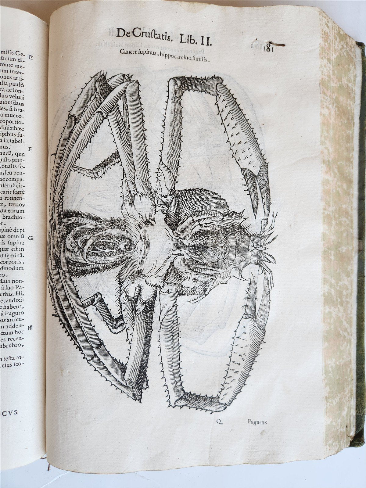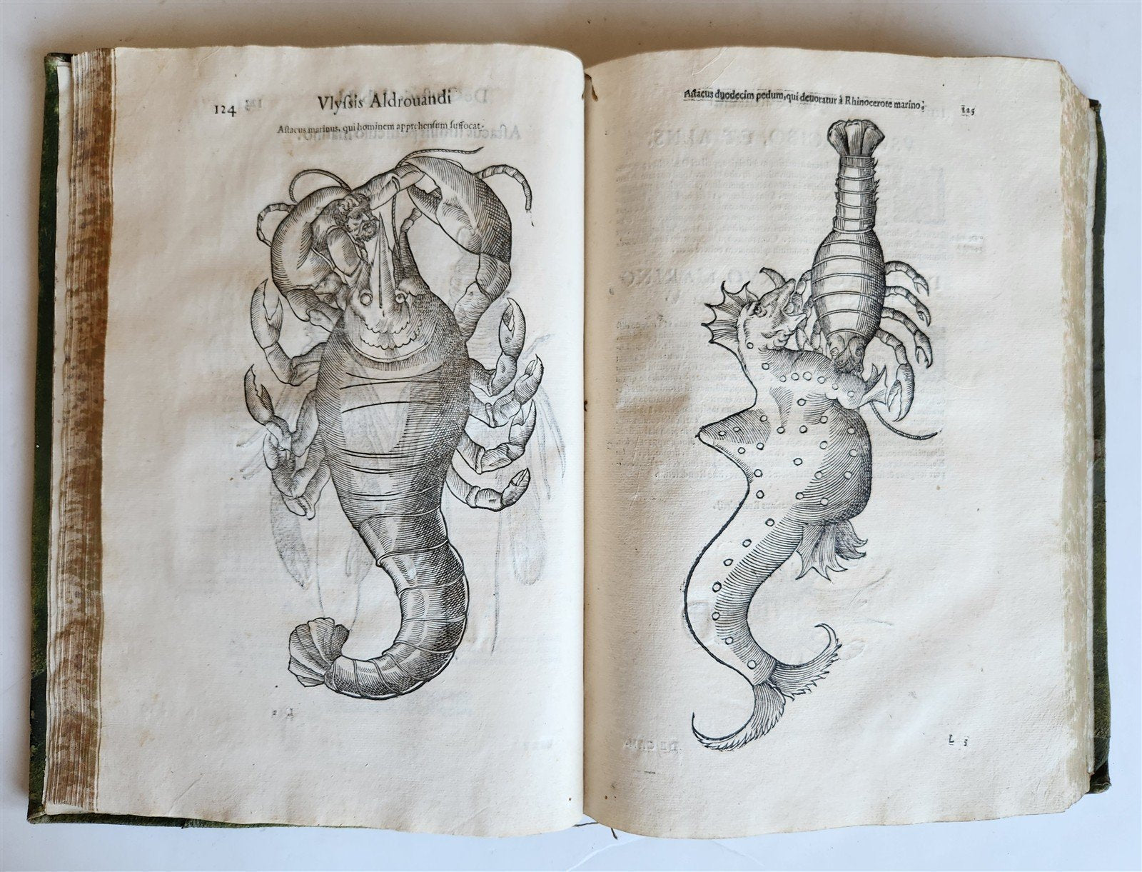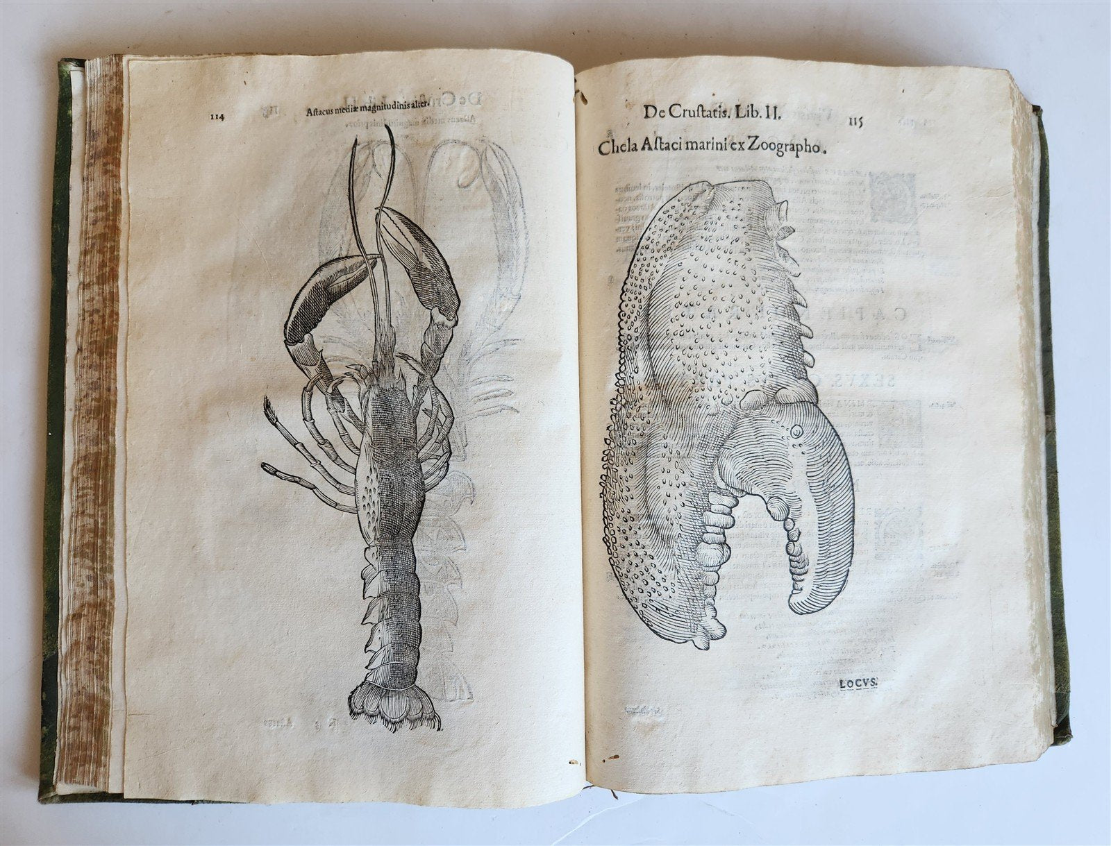 First edition of Aldrovandi's posthumous work on mussels, snails, crustaceans, and octopuses with magnificent woodcut illustrations.
