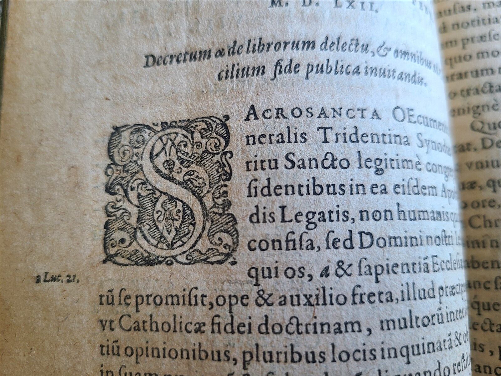 1621 SANCROS. CONCILII TRIDENTINI CANONES et DECRETA antique PIGSKIN BINDING