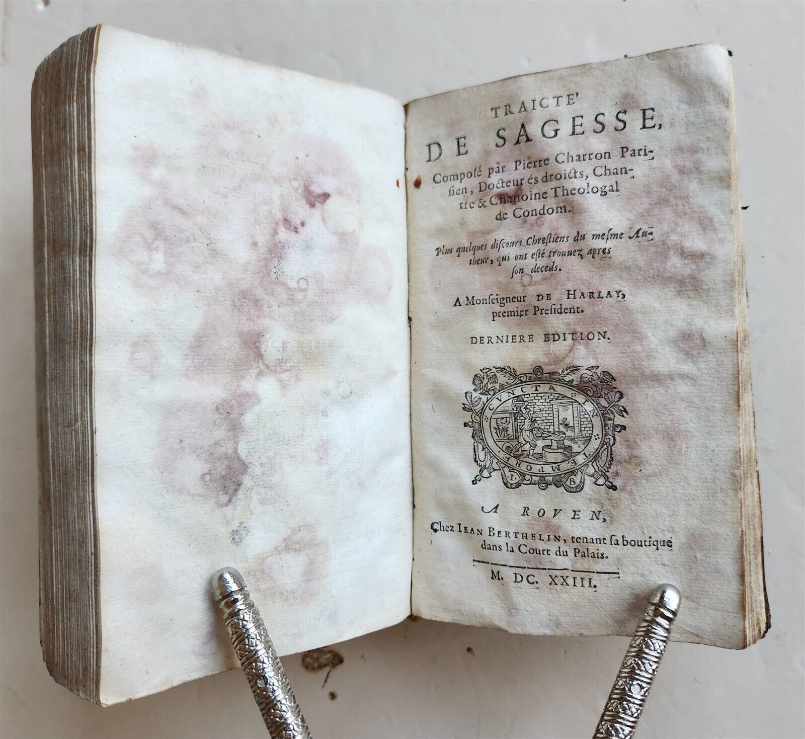 1623 French neo-skepticism by PIERRE CHARRON antique DECORATIVE BINDING