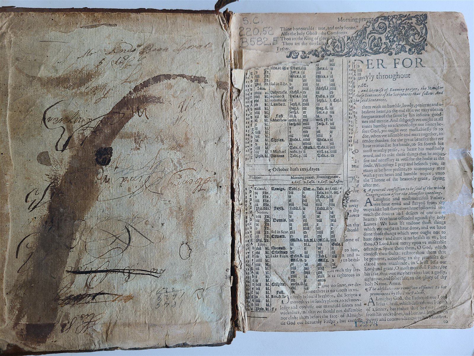 Lacking preliminaries, Old Testament frontis and first parts of common prayers.
