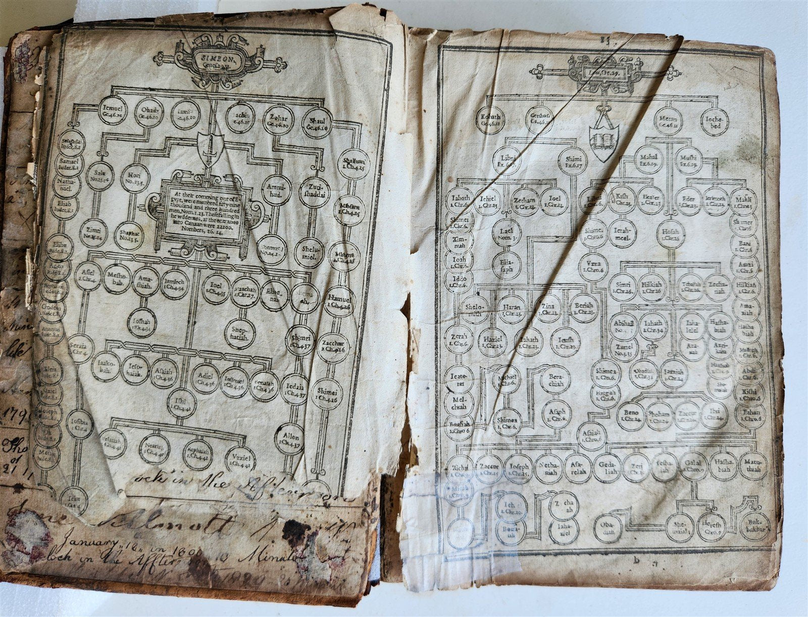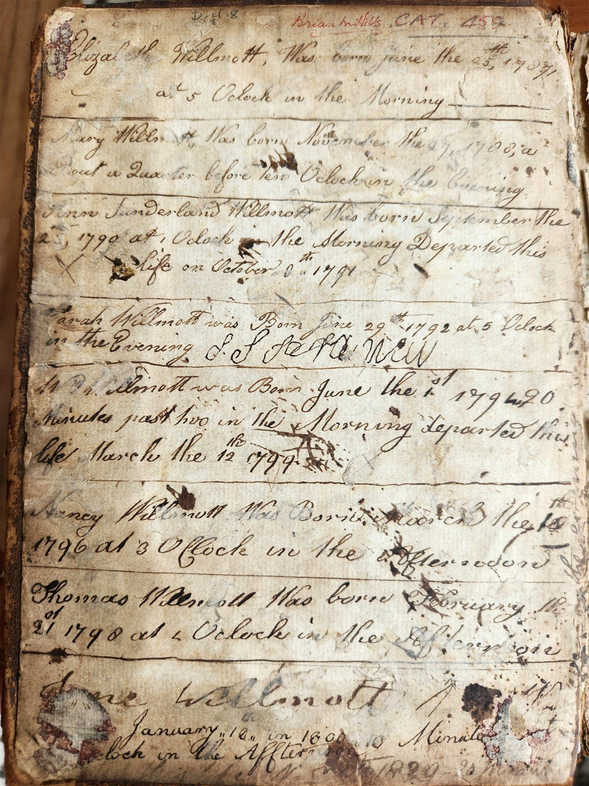 Front pastedown with old family entires