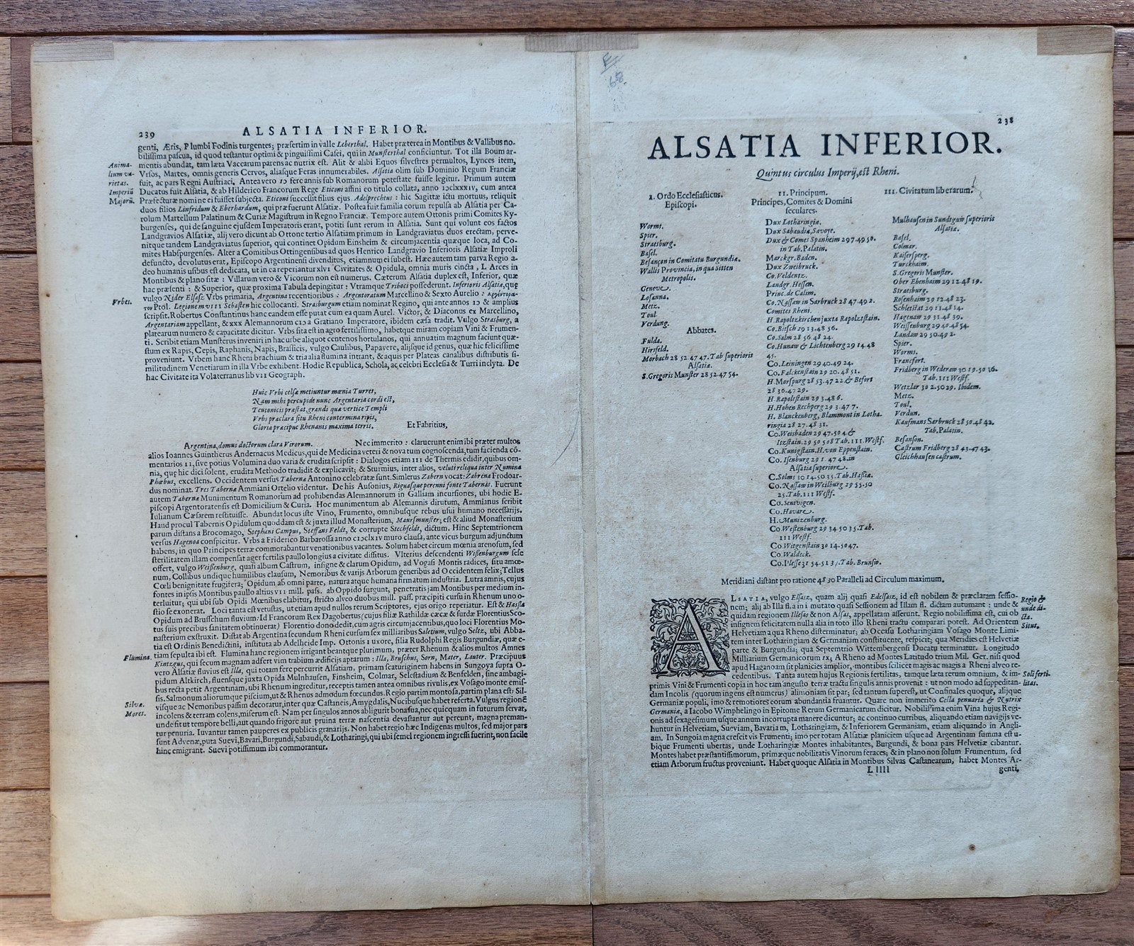 1630s ALSACE FRANCE antique MAP by GERARD MERCATOR L'ALSATIA INFERIOR