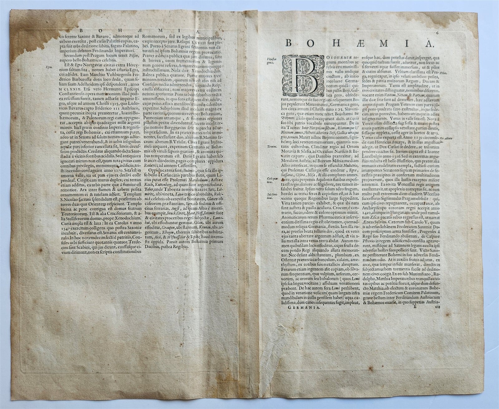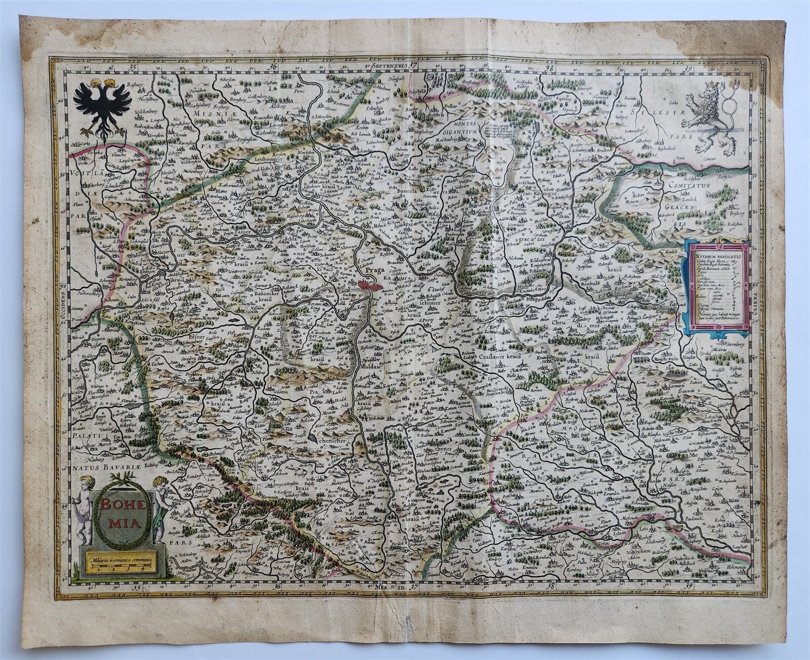 MAP BOHEMIACZECHIAAmsterdam: Willem Blaeu; 1640. (from : Theatrum orbis terrarum, sive Atlas novus)Hand coloredOverall 18.5 by 22.5 inchesSome wear, spots to the margins100% authentic