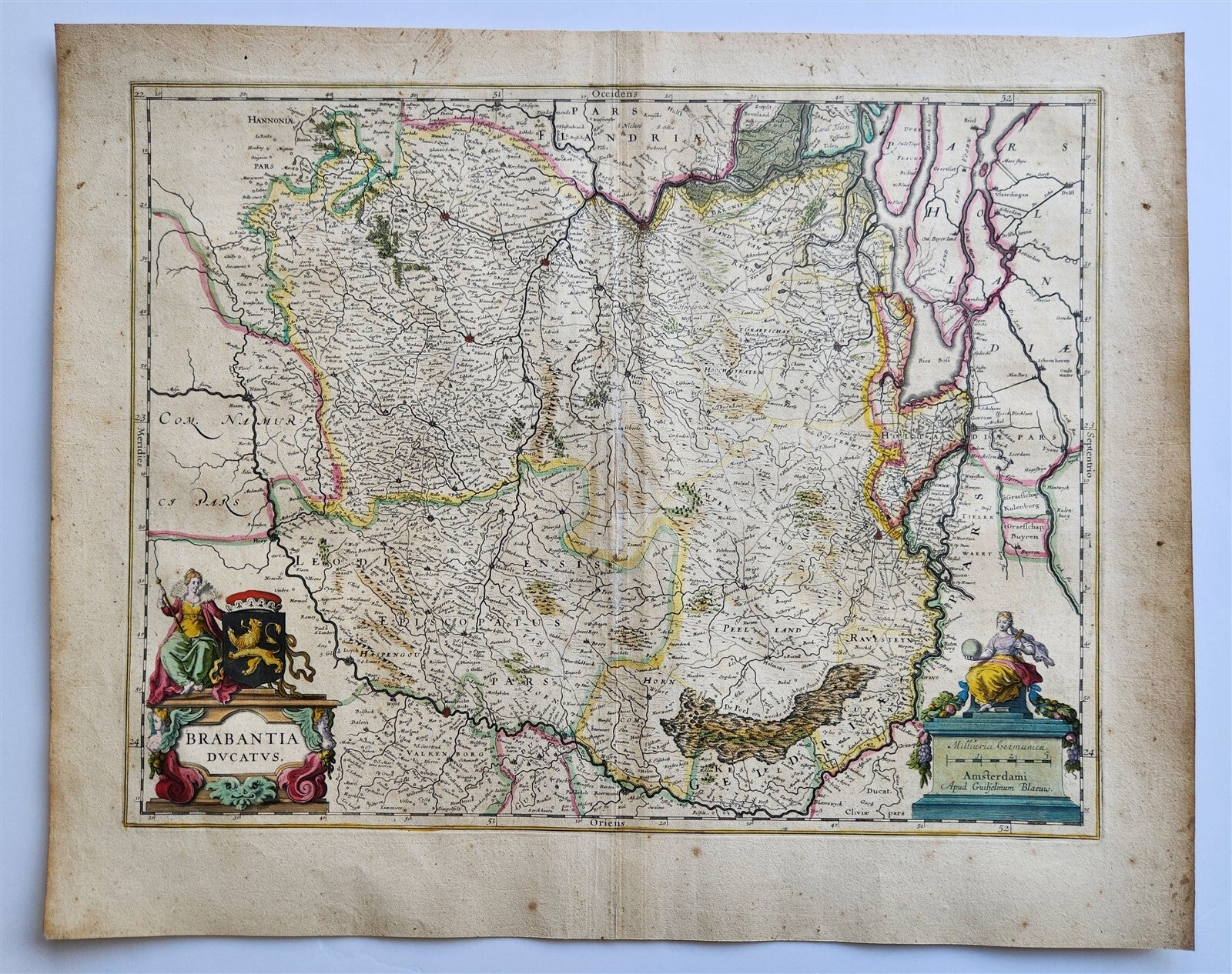 MAP BRABANTIA DUCATUSBELGIUMAmsterdam: Willem Blaeu; 1640. (from : Theatrum orbis terrarum, sive Atlas novus)Hand coloredOverall 18 by 22.5 inchesgood condition, some wear100% authentic