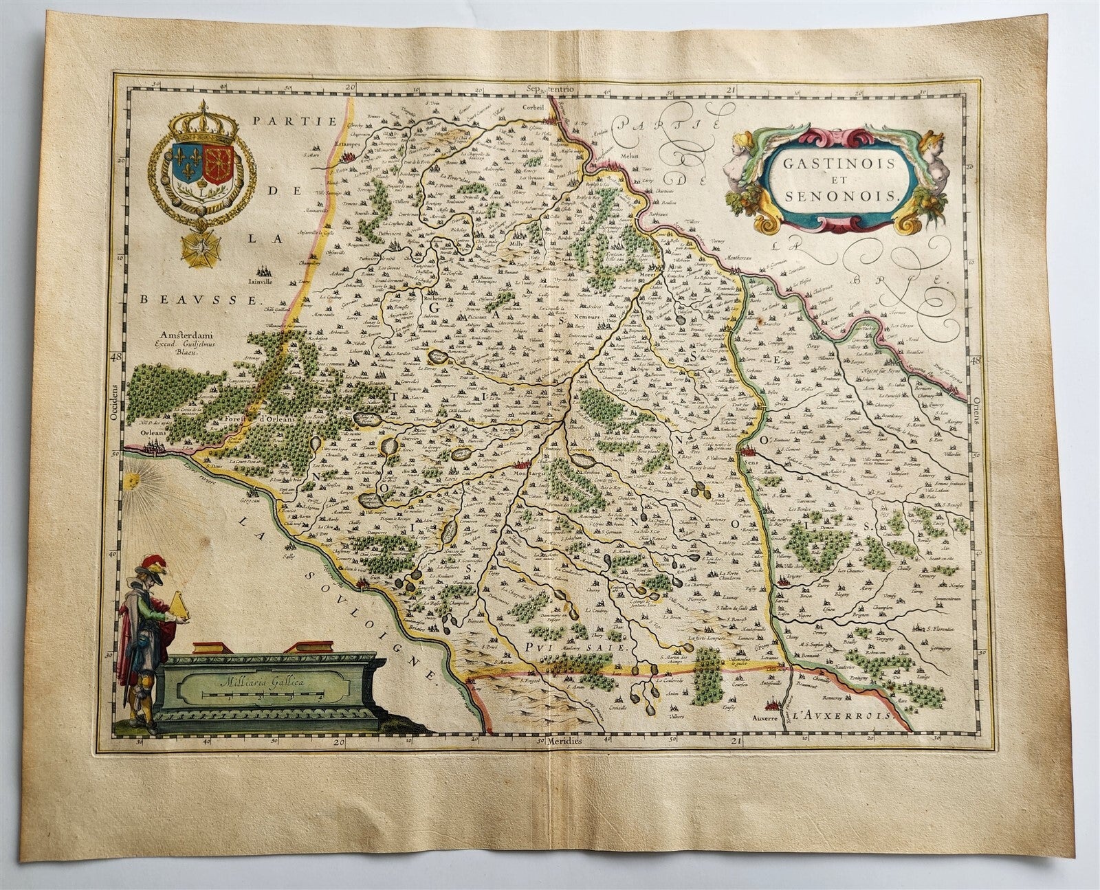 1640 MAP GASTINOIS SENONOIS FRANCE WILLEM BLAEU antique AUTHENTIC hand colored