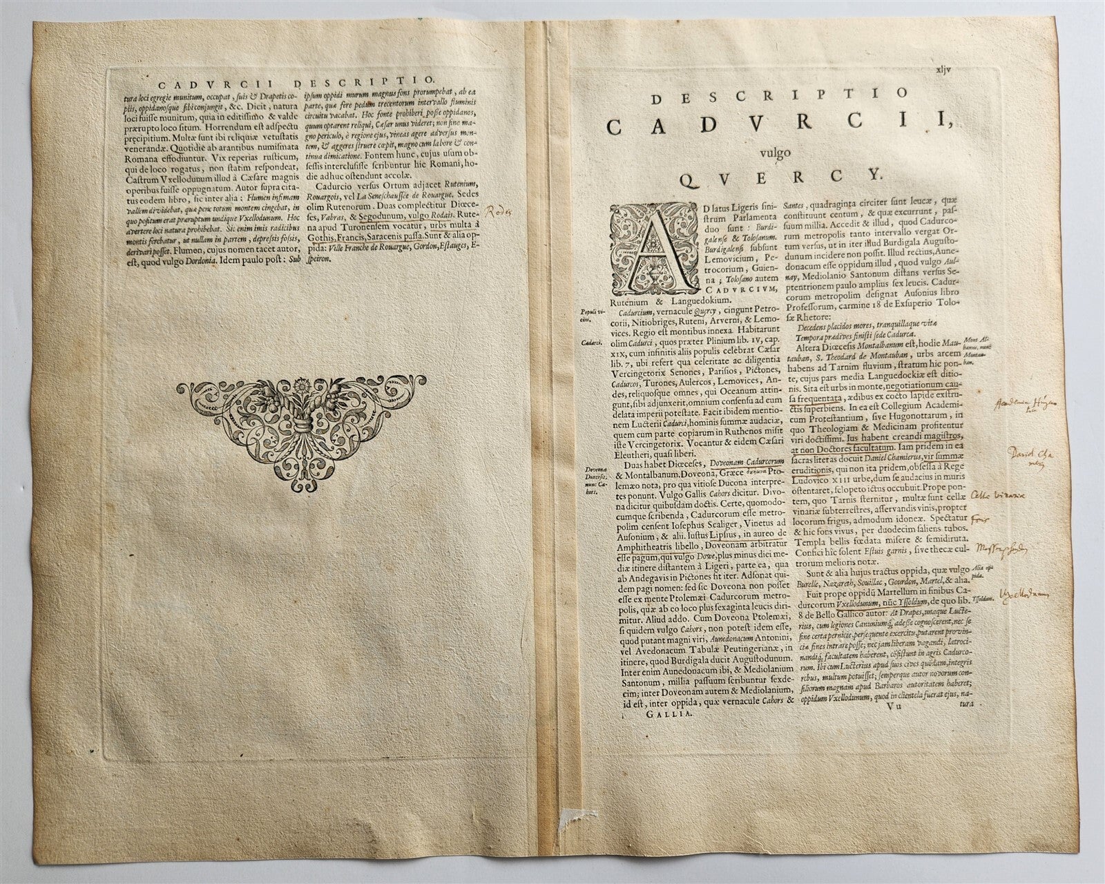 MAP CADURCIUM VERNACULE QUERCI(Province of Quercy, France)Amsterdam: Willem Blaeu; 1640. (from : Theatrum orbis terrarum, sive Atlas novus)Hand coloredOverall 18 by 22.5 inchesVery good condition100% authentic