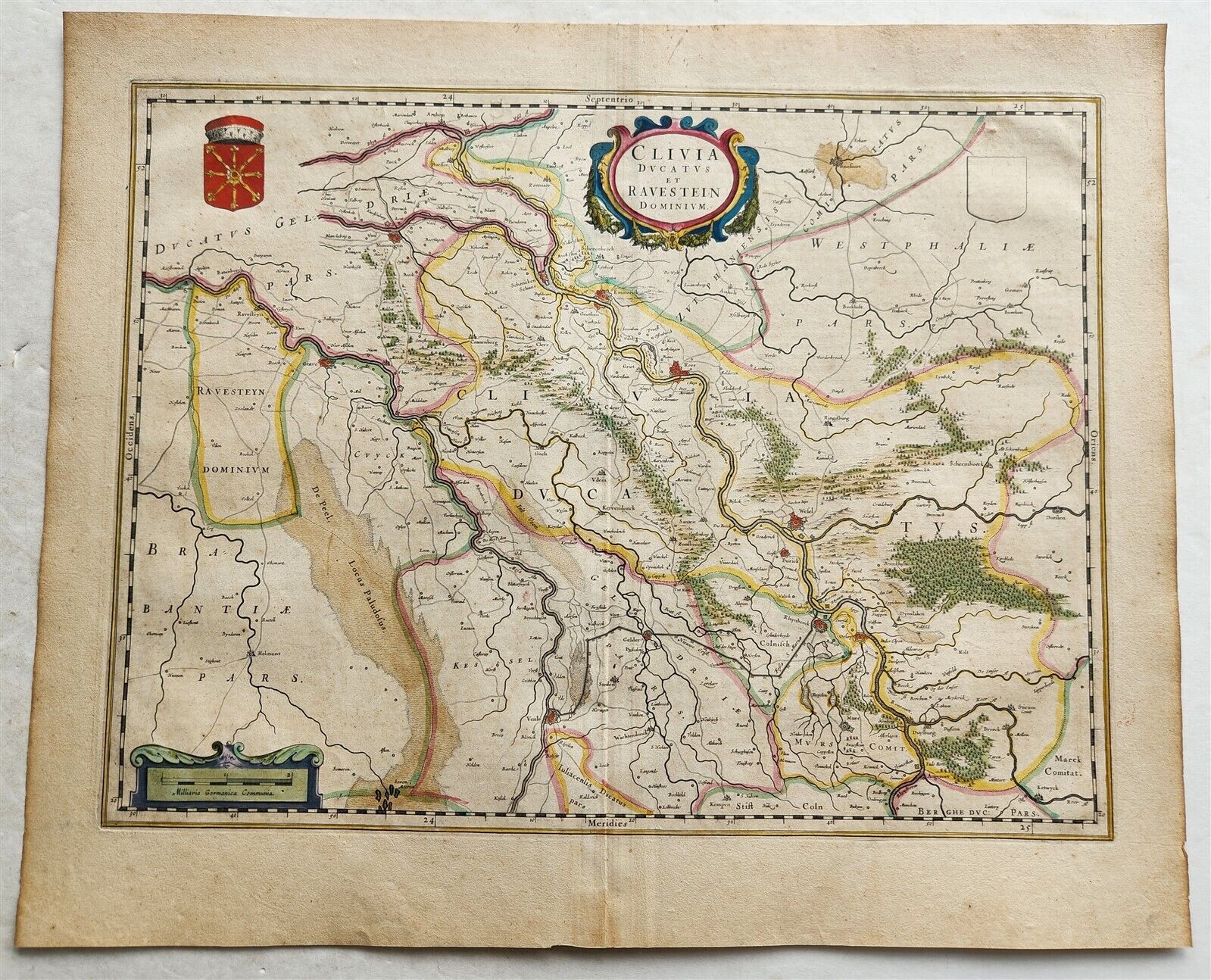 1640 MAP of GERMANY CLEVE & RAVENSTEIN by WILLEM BLAEU antique AUTHENTIC