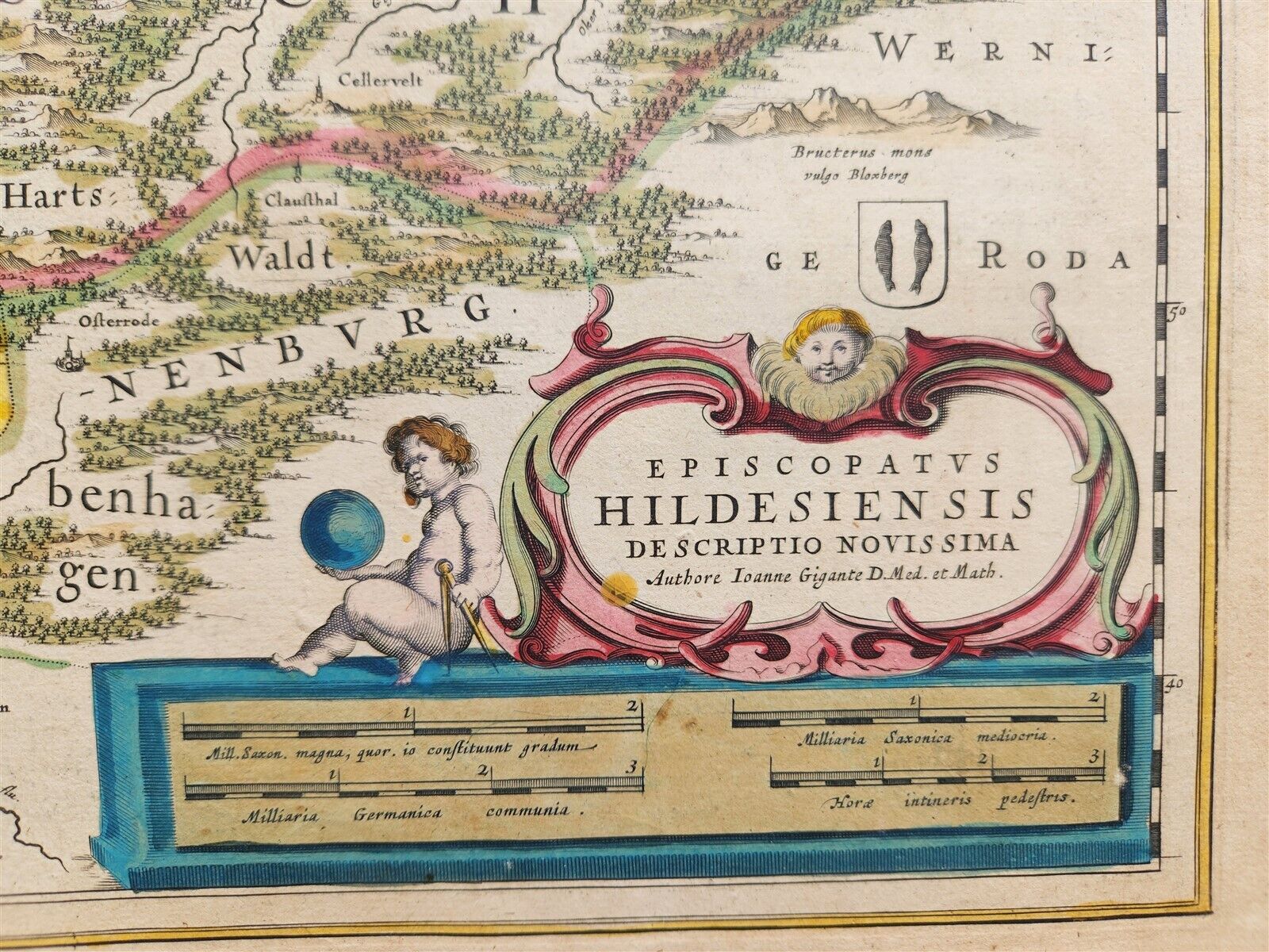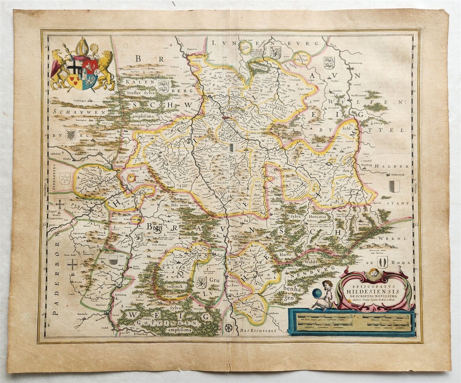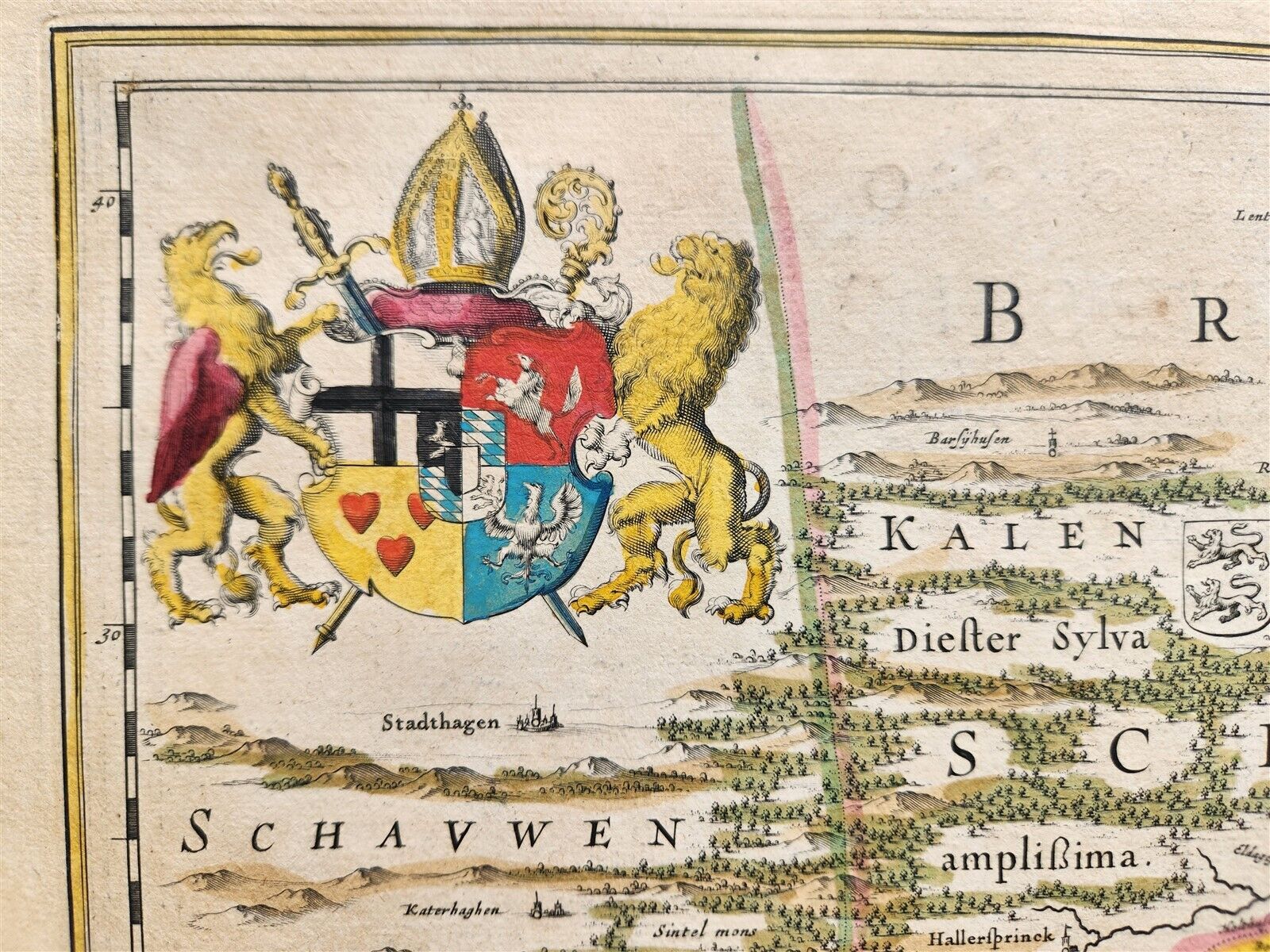 1640 MAP of GERMANY HILDESHEIM by WILLEM BLAEU antique AUTHENTIC hand colored