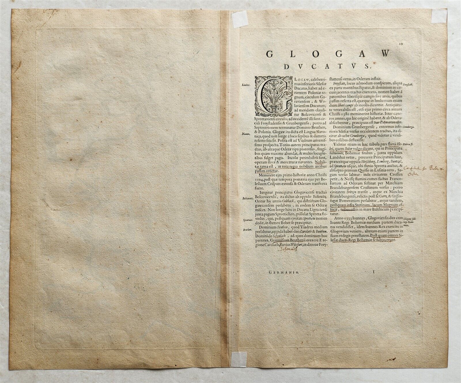 1640 MAP of GERMANY POLAND GLOGOW SILESIA by WILLEM BLAEU antique AUTHENTIC
