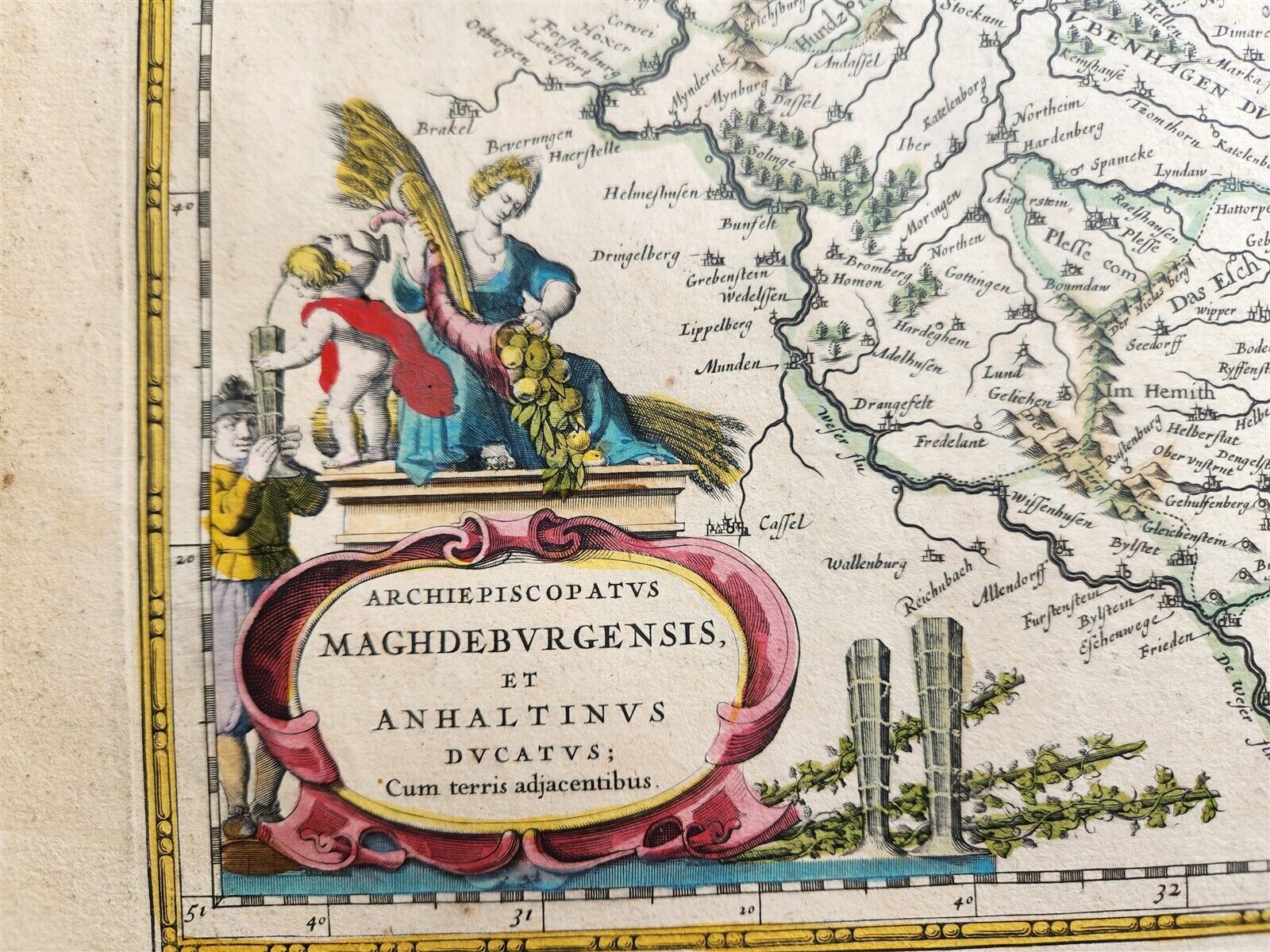 MAP ARCHIEPISCOPATUS MAGHDEBURGENSIS et ANHALTINUSAmsterdam: Willem Blaeu; 1640. (from : Theatrum orbis terrarum, sive Atlas novus)Map of Germany:Lower-Saxony and Saxony-Anhalt Hand coloredSize of the plate 14 1/2 by 19 inchesOverall 18 1/2 by 22 1/2 inchesVery good condition100% authentic