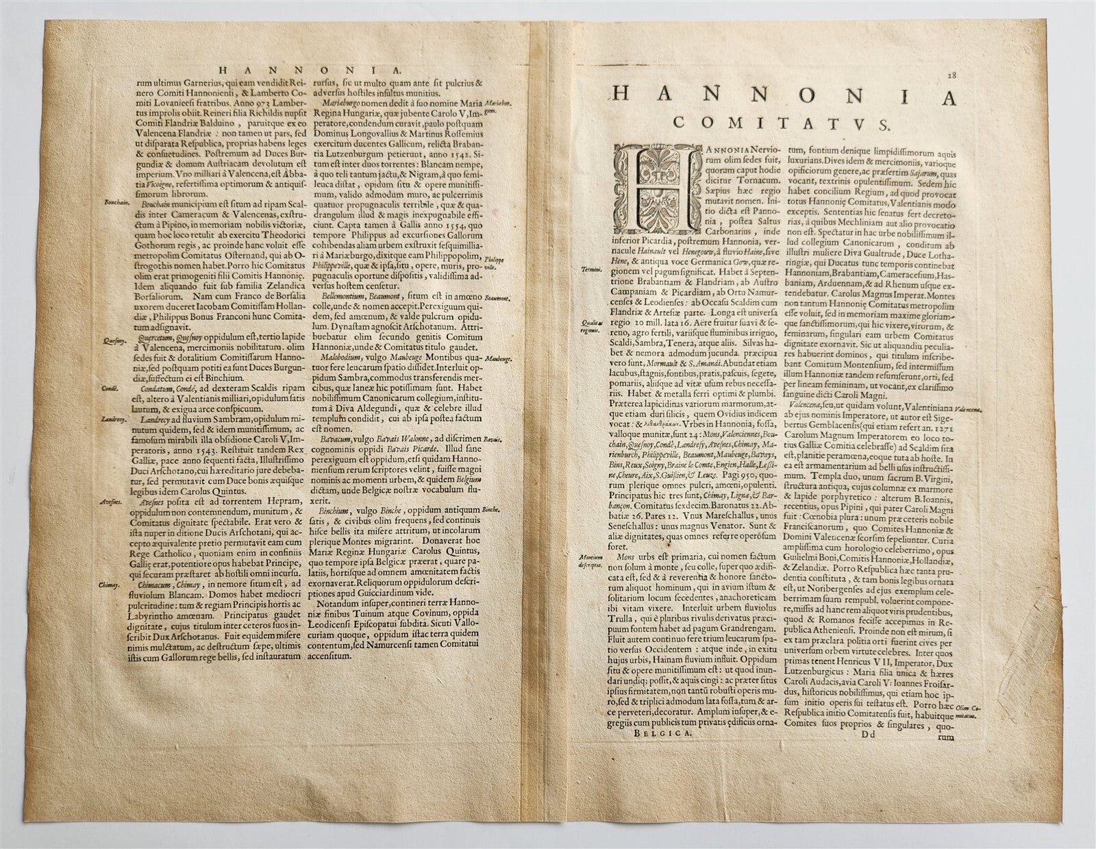 "Comitatuum Hannoniae et Namurci Descriptio" translates to "Description of the Counties of Hainaut and Namur" in English.