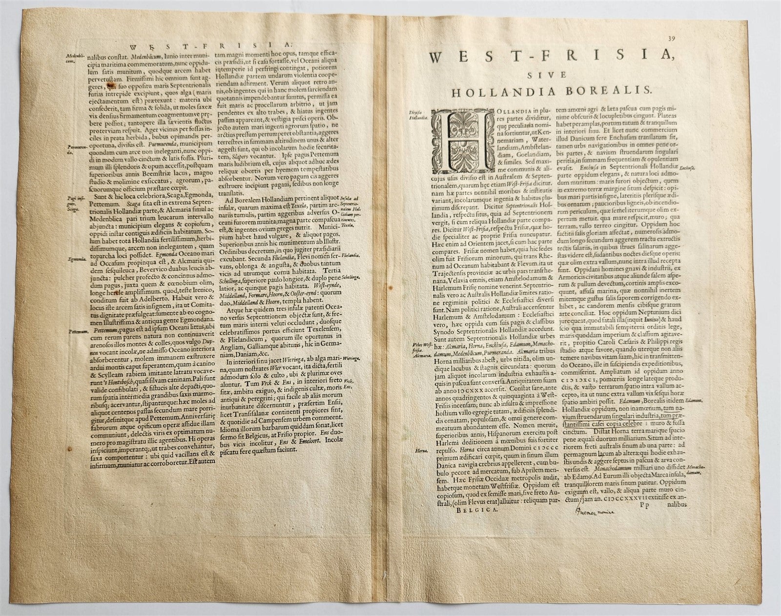 MAP Hollandiae pars septentrionalis, Vulgo Westuriesland en Tnoorder QuartierNETHERLANDSAmsterdam: Willem Blaeu; 1640. (from : Theatrum orbis terrarum, sive Atlas novus)Northern Holland with Amsterdam and the neighboring area. Hand coloredOverall 18.5 by 22.5 inchesVery good condition, small damage to the lower part, visible on the scan100% authentic