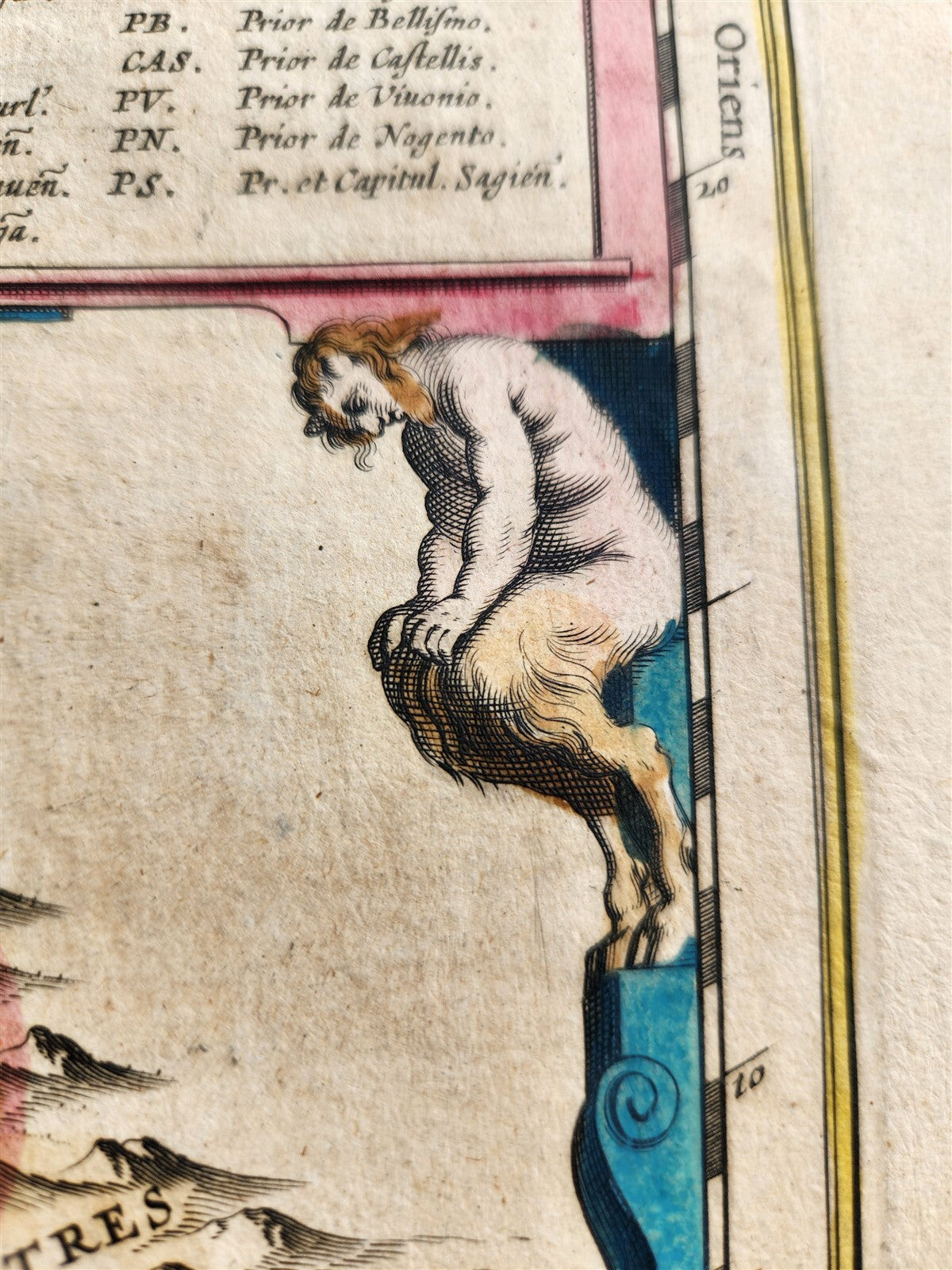 1640 MAP of LE MANS FRANCE by WILLEM BLAEU antique AUTHENTIC hand colored